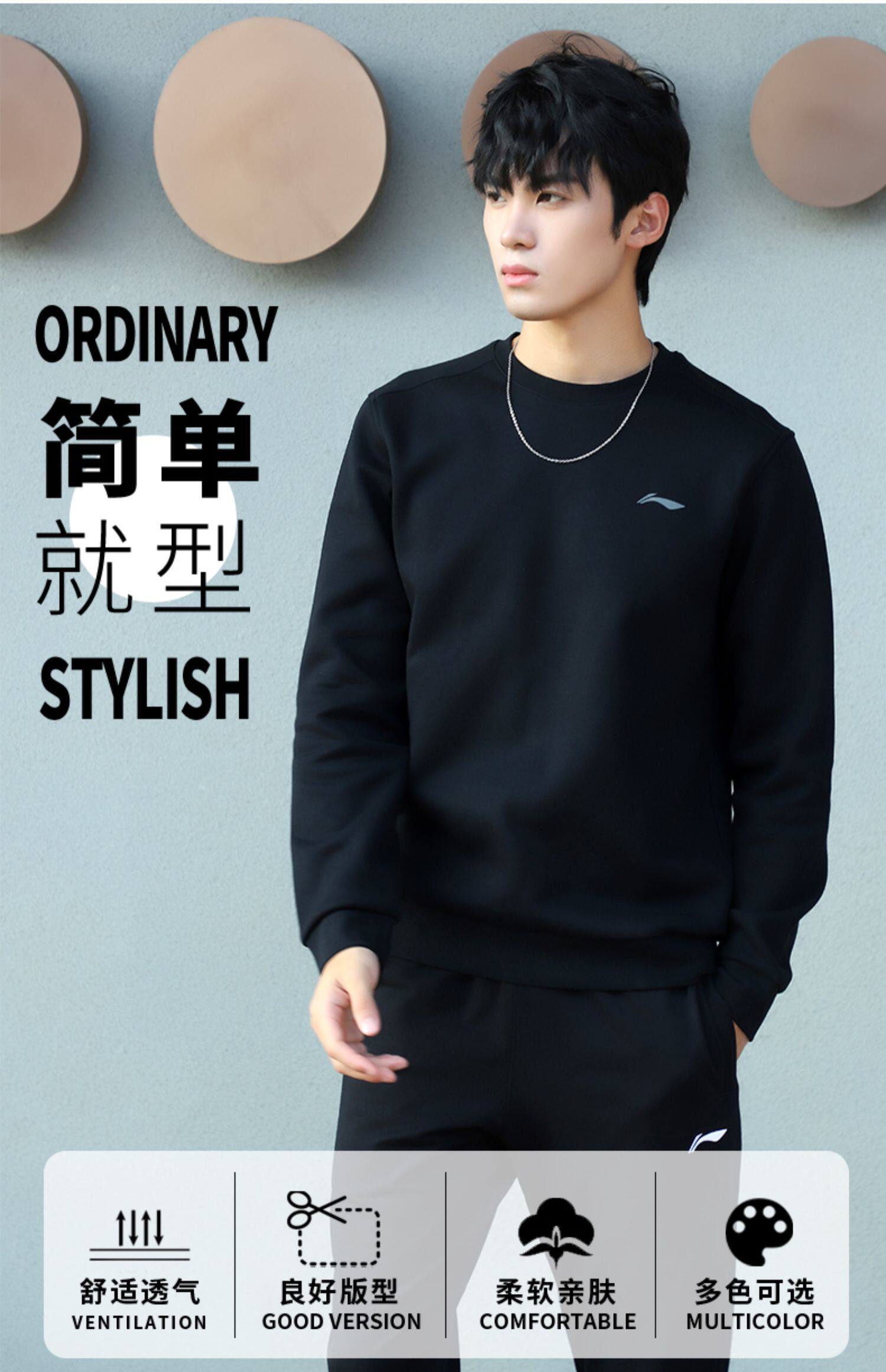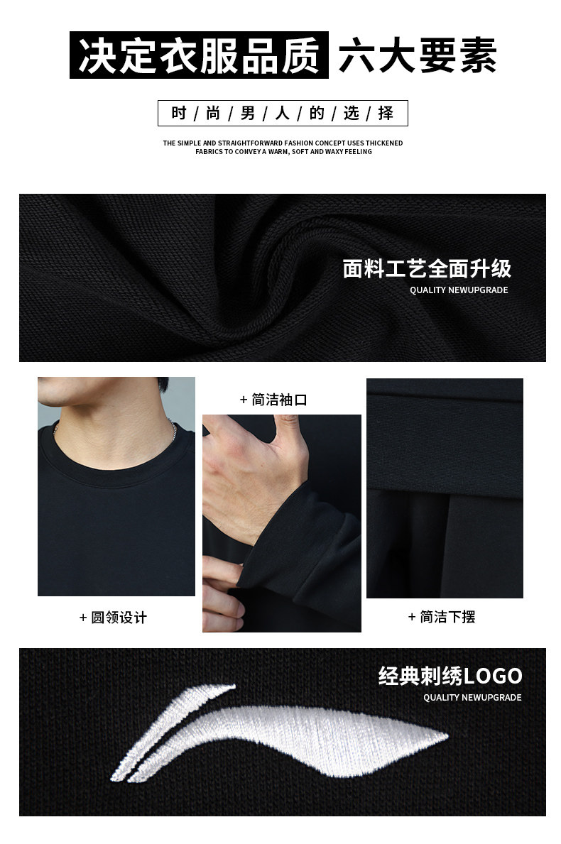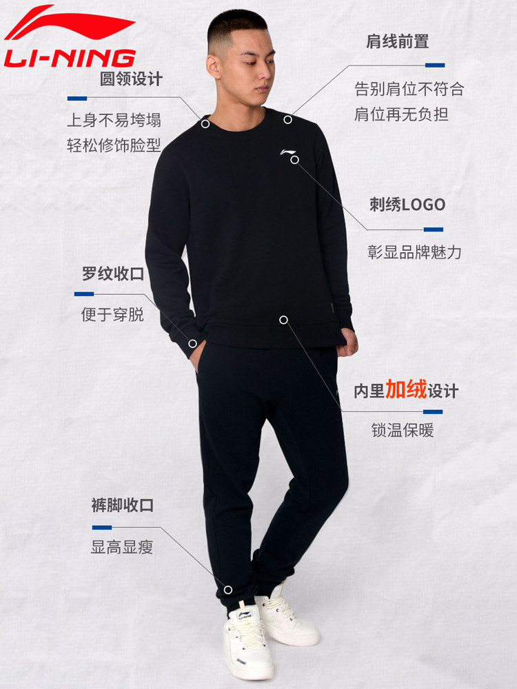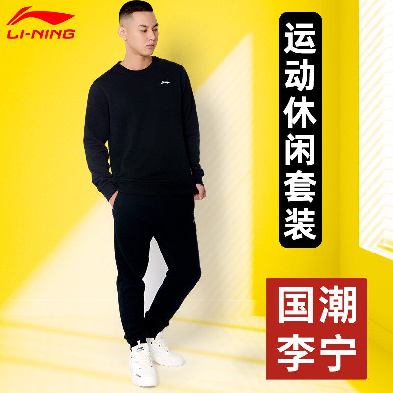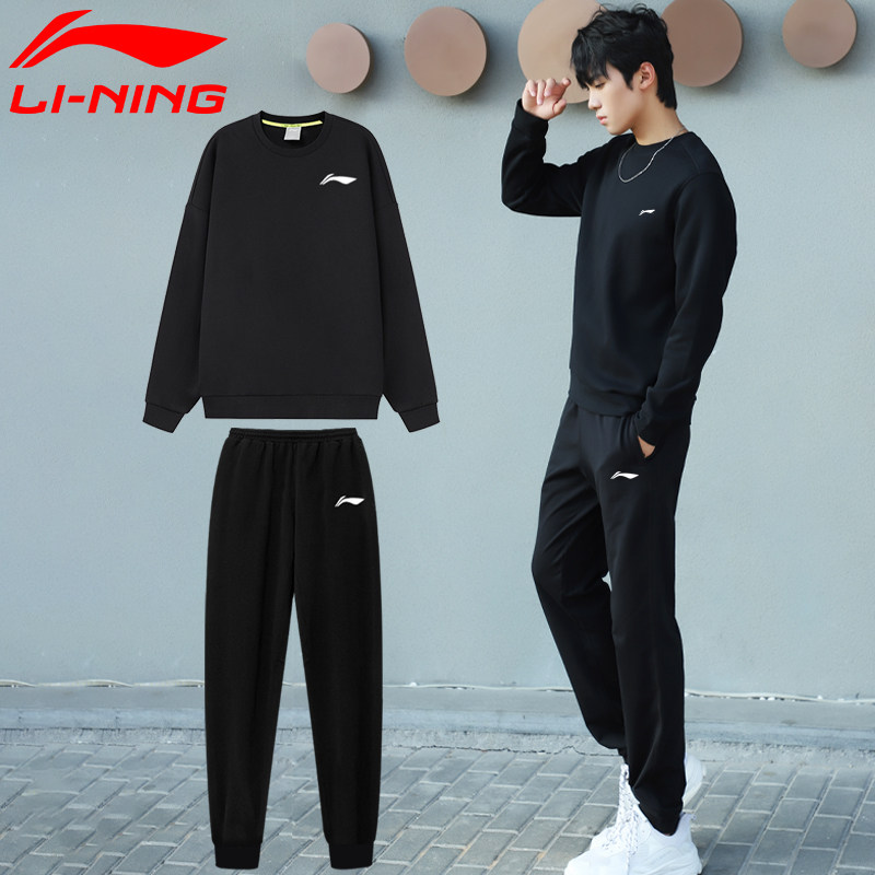 Li Ning, спортивный костюм, комплект, толстовка, флисовые штаны для школьников и студентов для отдыха, свободный крой