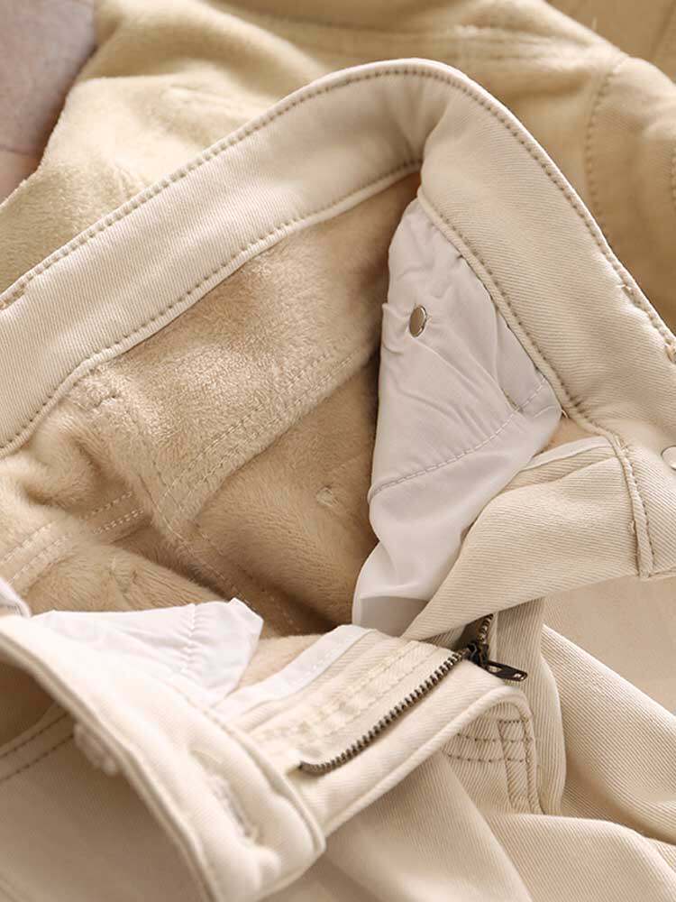 Флисовые белые джинсы, демисезонные светлые штаны, подходит для подростков, 2023, увеличенная толщина
