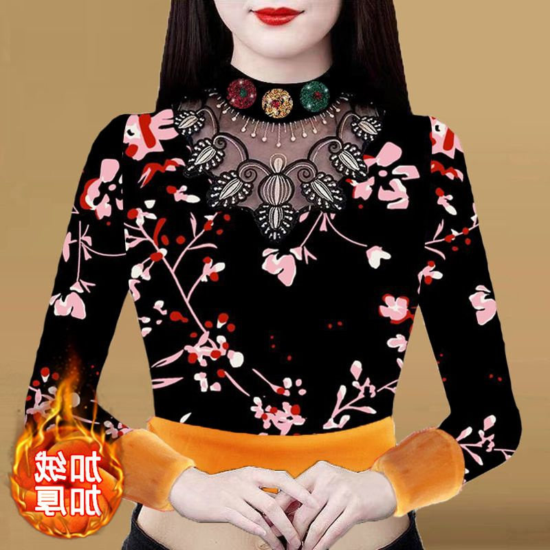 Кружевной шелковый приятный телу демисезонный утепленный лонгслив, высокий воротник