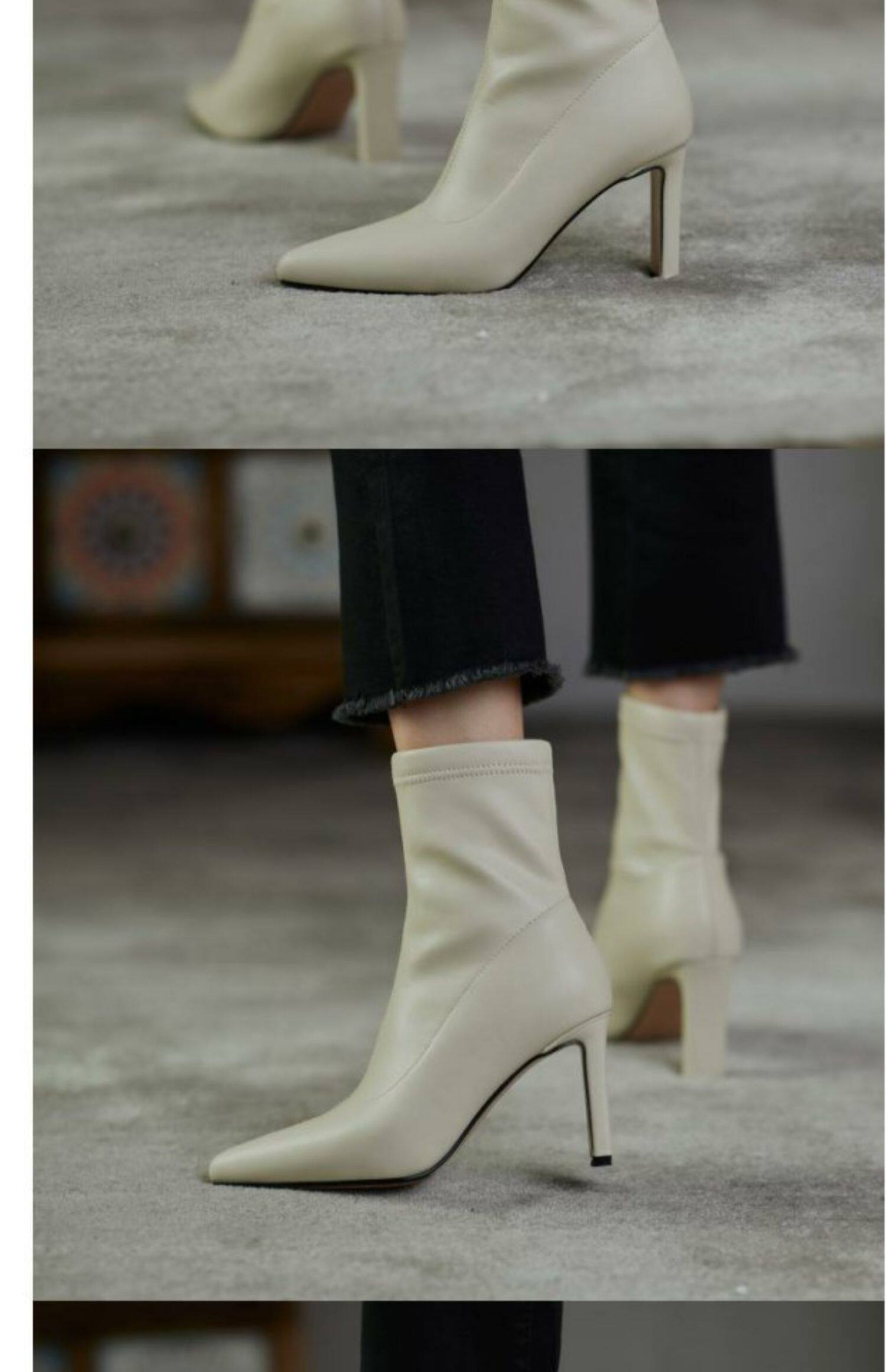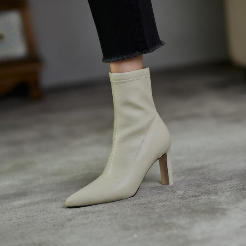 Демисезонные эластичные сапоги с заостренным носом на высоком каблуке, 2023