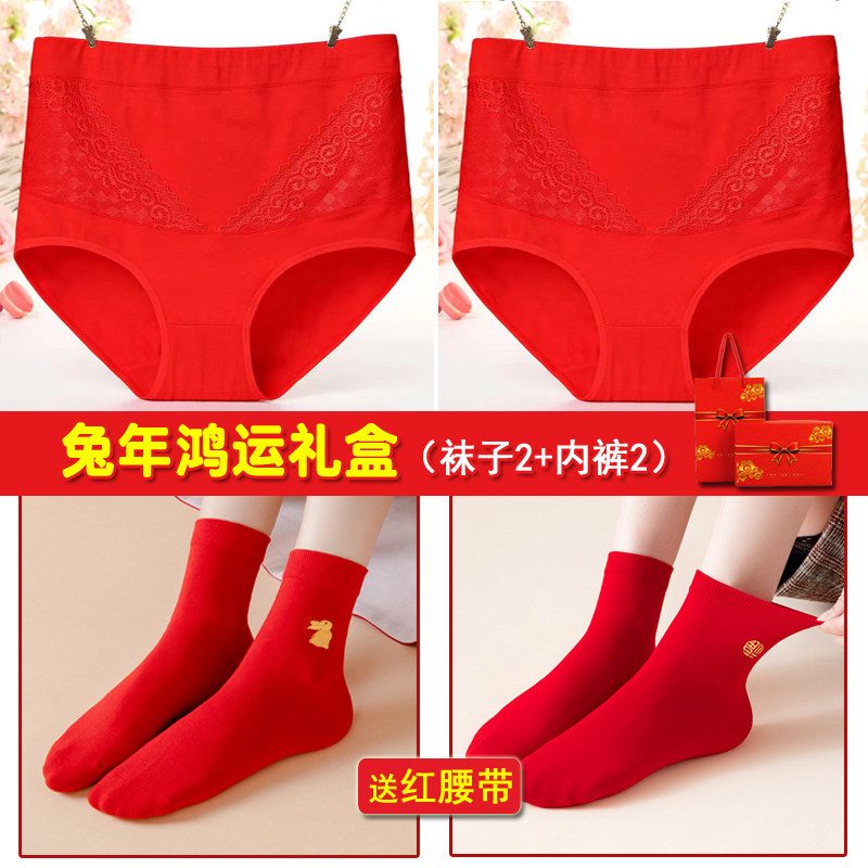 Красный оберег на день рождения, трусы, штаны, нижнее белье, подарочная коробка, комплект, большой размер, высокая талия