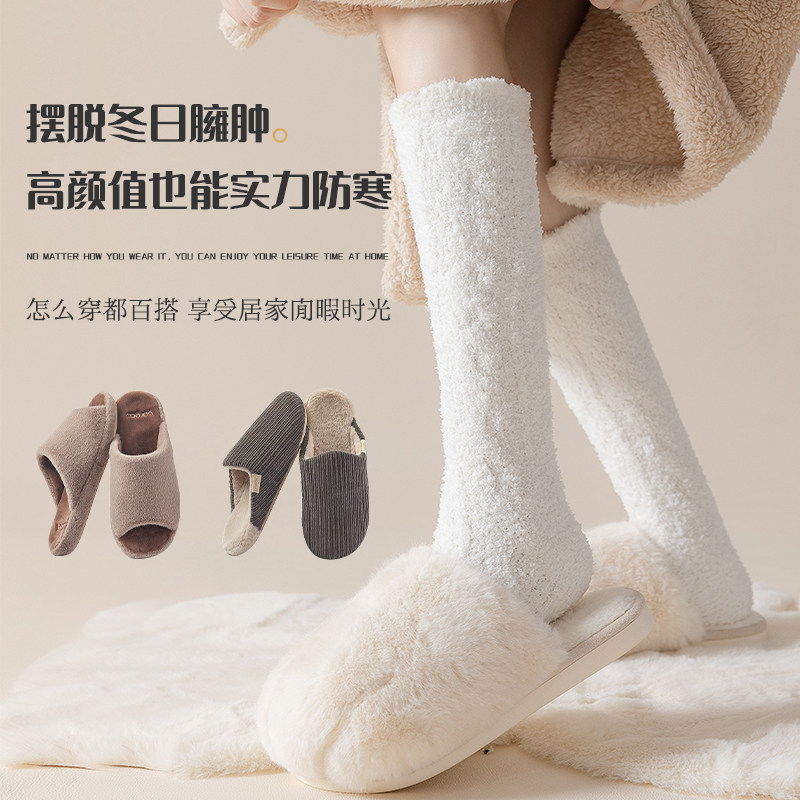 Осенние демисезонные коралловые бархатные носки для молодой матери для беременных, увеличенная толщина, средней длины