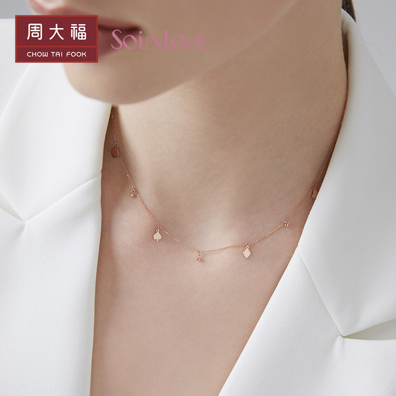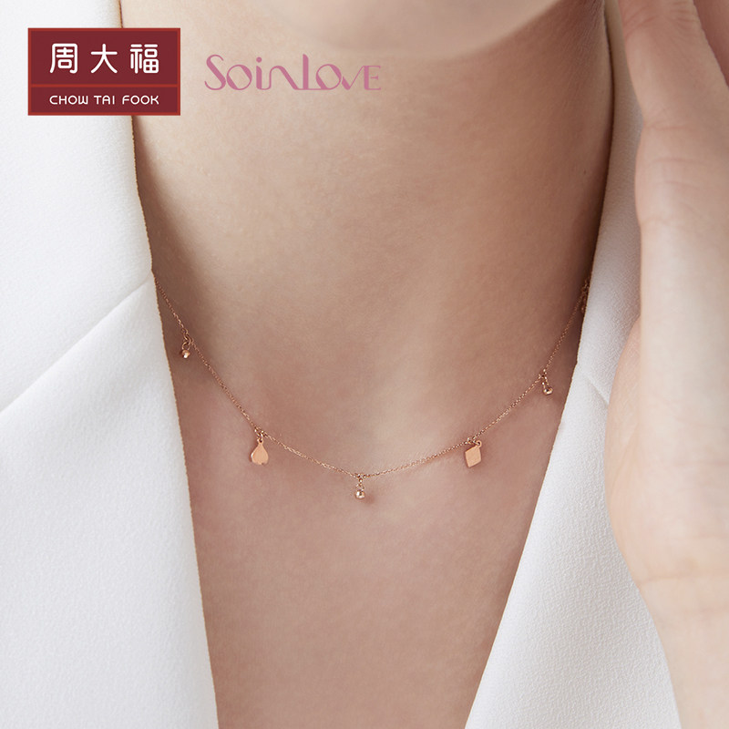 周大福 Soinlove "Treasure Girl" 18K Золотое персиковое ожерелье Женщина VE179