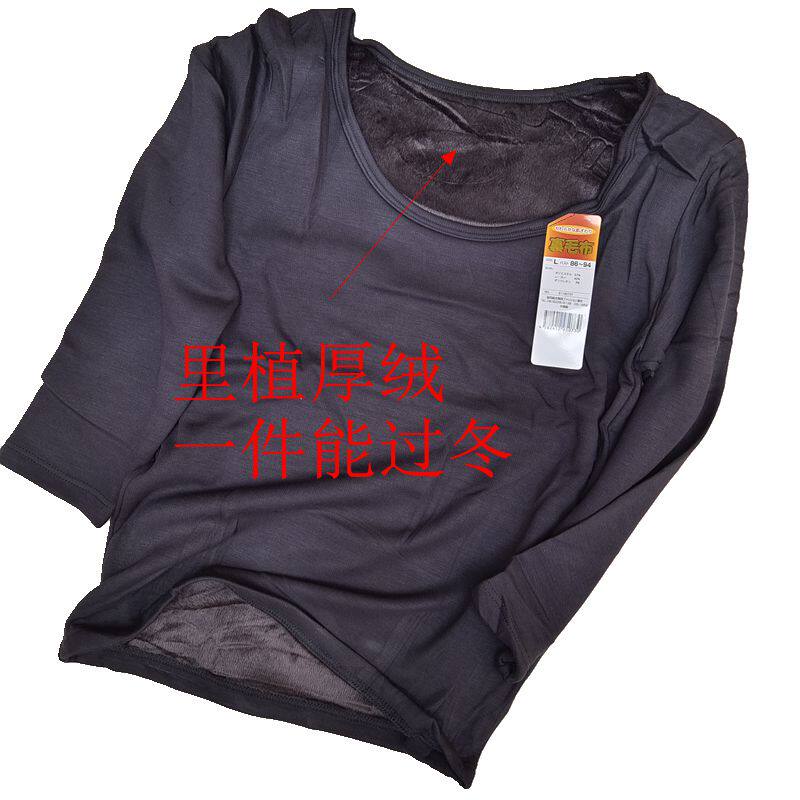 Японская бархатная базовая приятная телу зимняя удерживающая тепло утепленный лонгслив с круглым воротником, увеличенная толщина