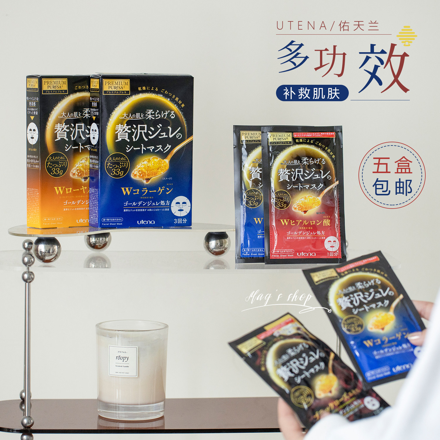 Японская золотая маска для лица, увлажняющий коллаген с гиалуроновой кислотой