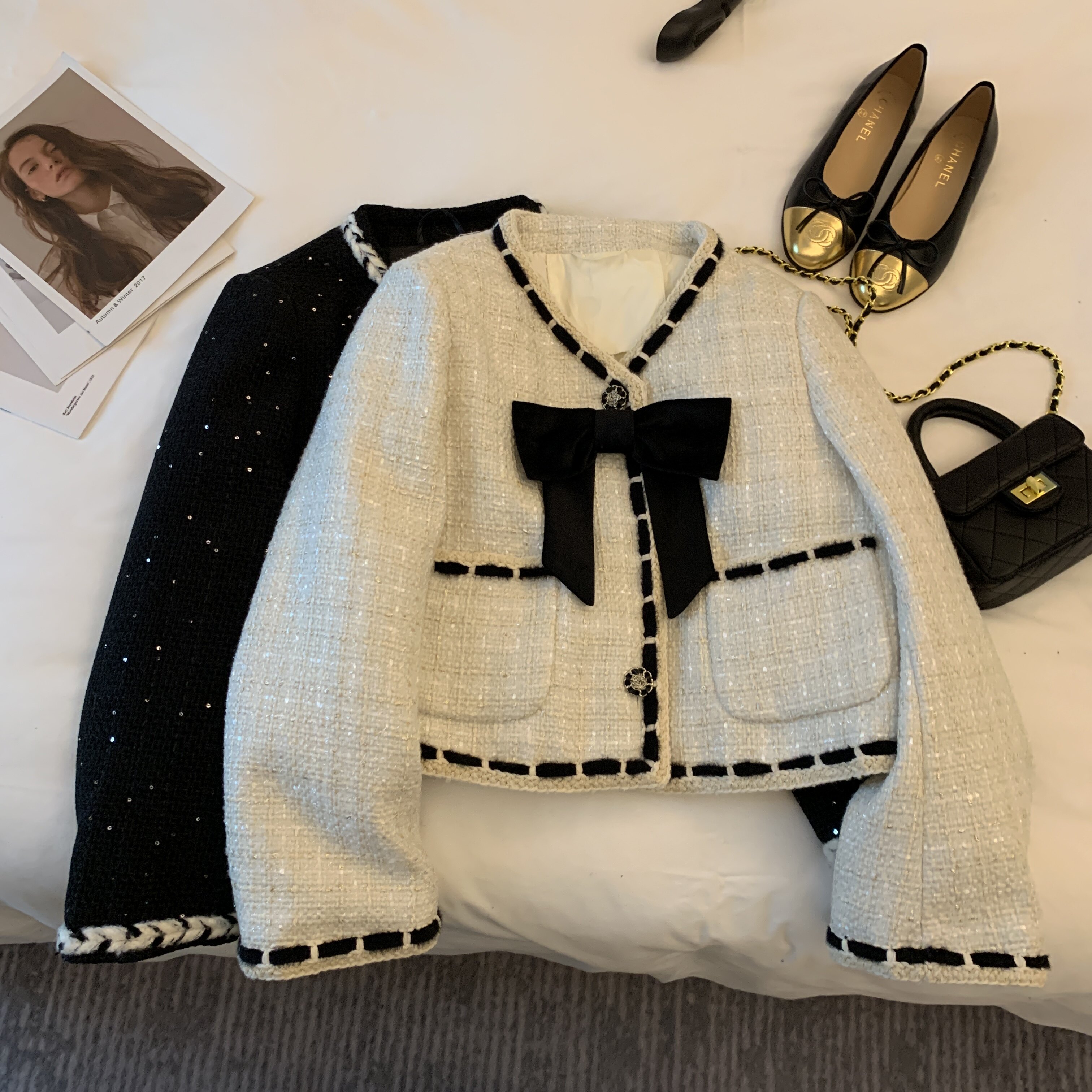Ретро шерстяная куртка с пухом с бантиком, французский стиль, в стиле Шанель, свободный крой
