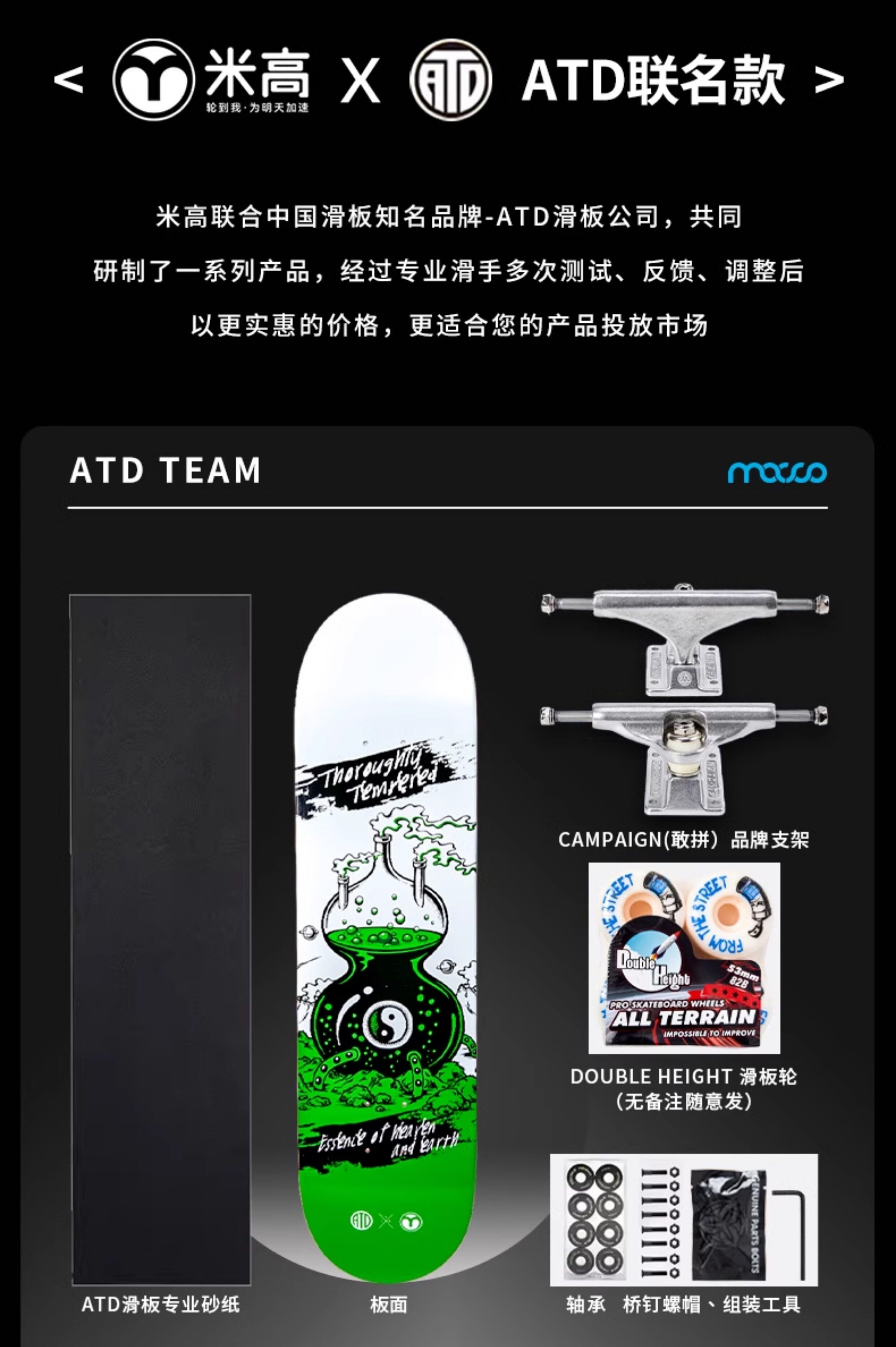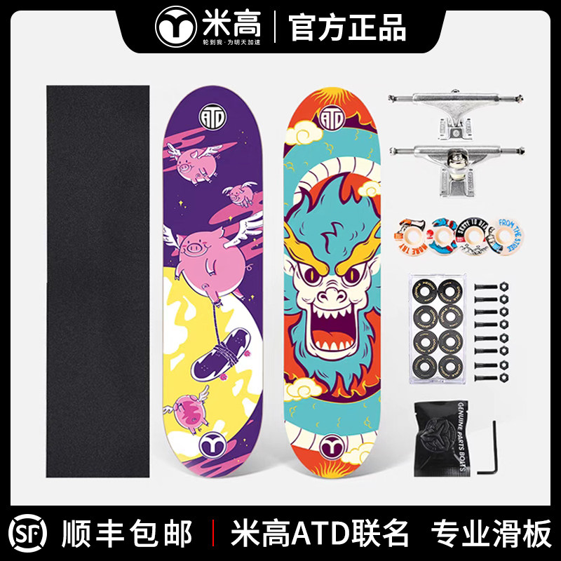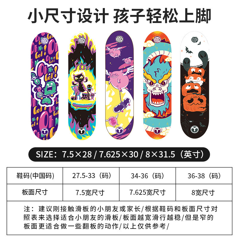 米高 Детский профессиональный скейтборд для начинающих с двумя изогнутыми концами подходит для мужчин и женщин, подходит для подростков