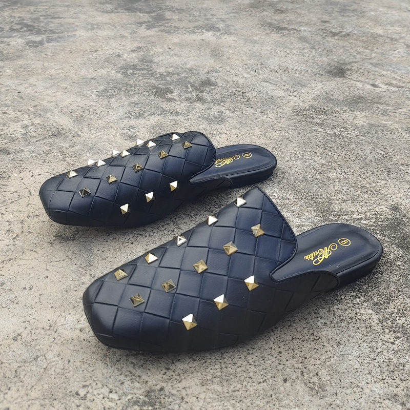 Ленивые тапочки, новый стиль внешней торговли, заклепки с квадратным носком, плоские каблуки, повседневные, универсальные и удобные тапочки, персонализированные женские сандалии.