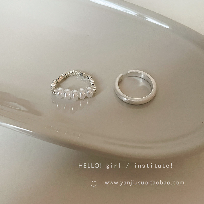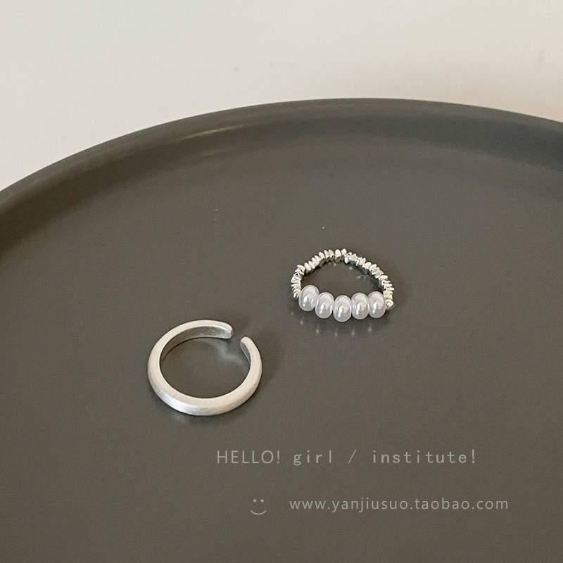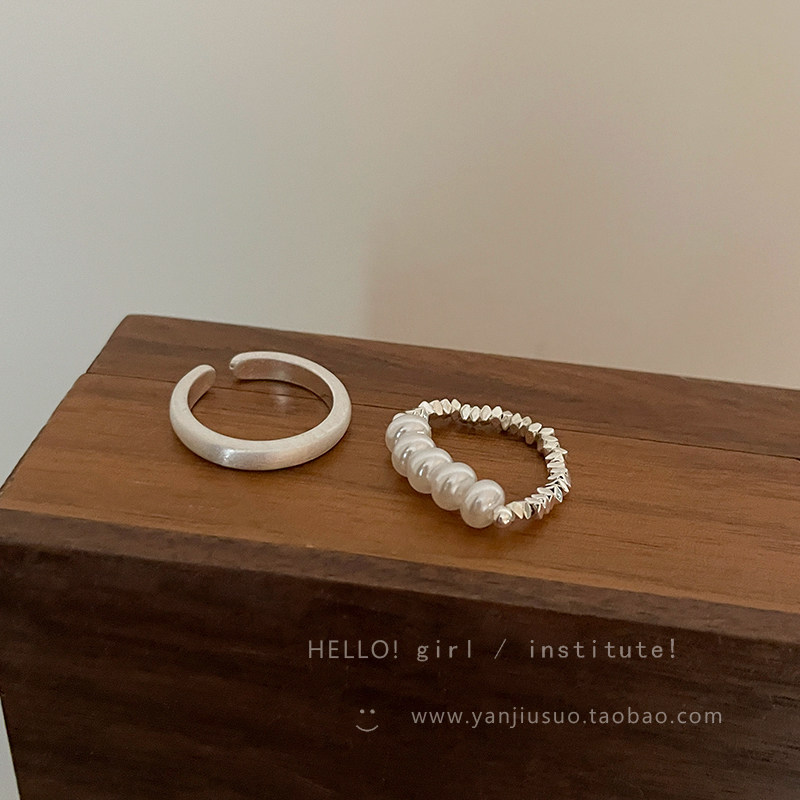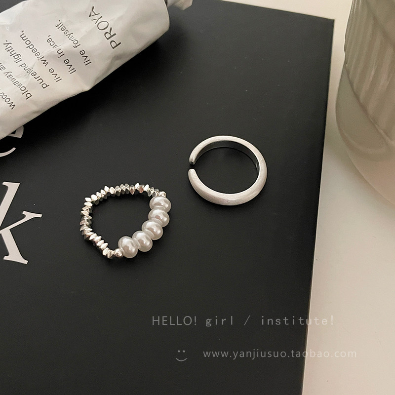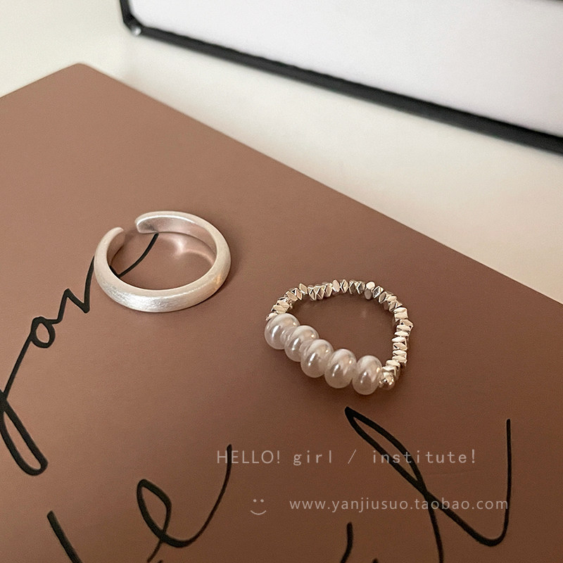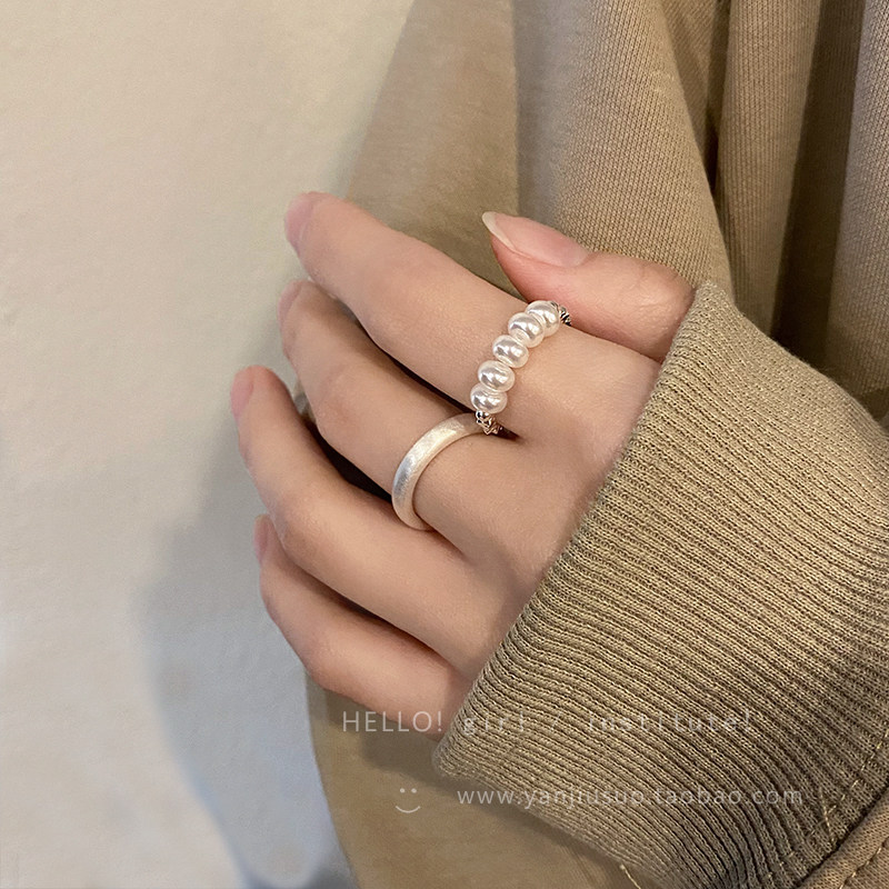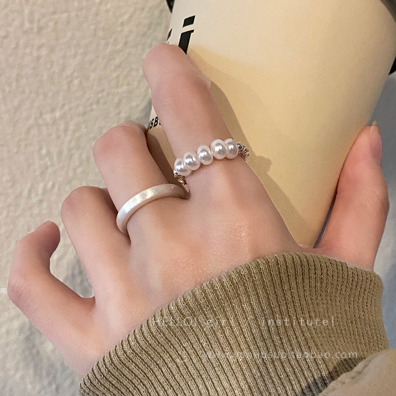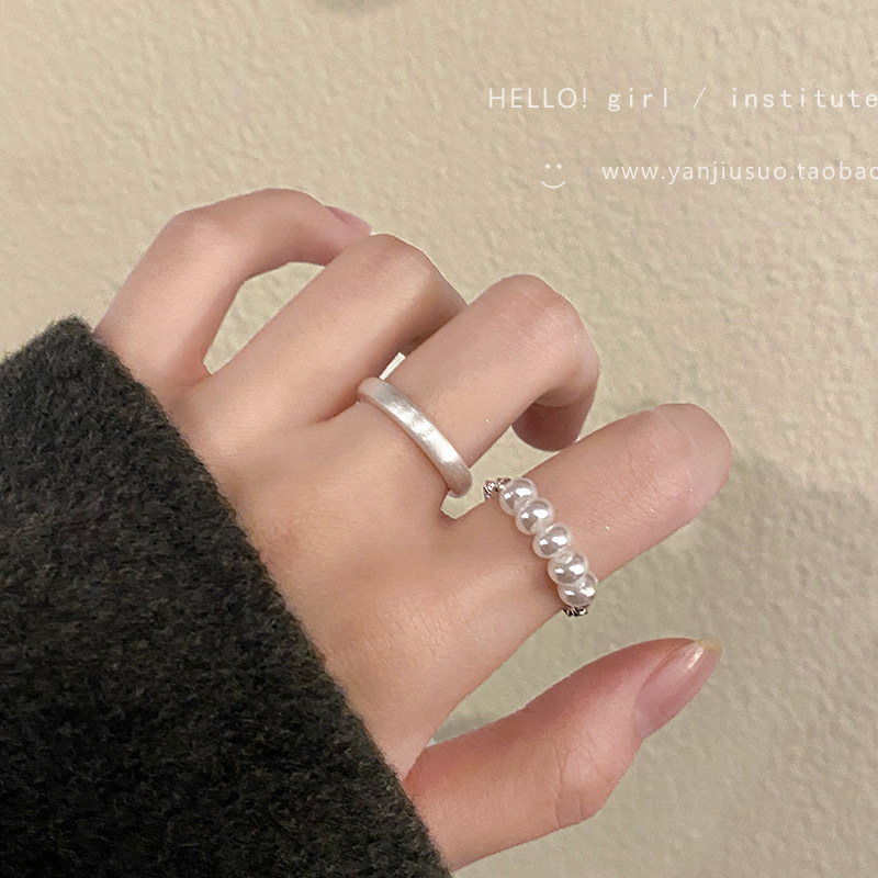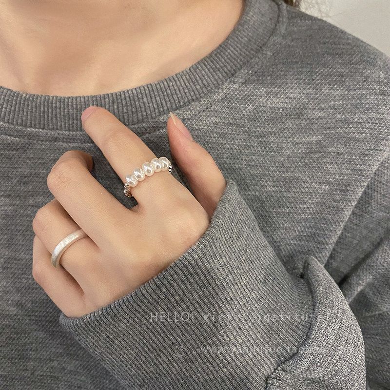 Безразмерное демисезонное небольшое кольцо из жемчуга, небольшой дизайнерский матовый металлический комплект, легкий роскошный стиль, на указательный палец