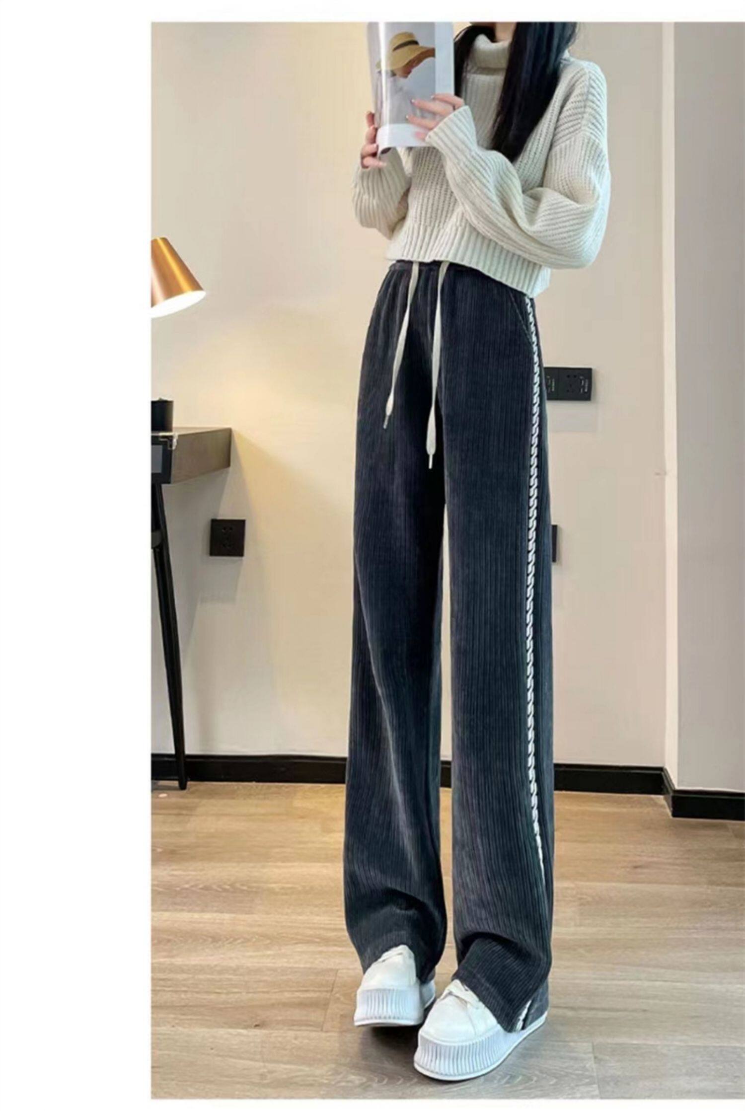 Черные весенние осенние штаны для отдыха, бархатный лебедь, штора, 2023 года, оверсайз, увеличенная толщина