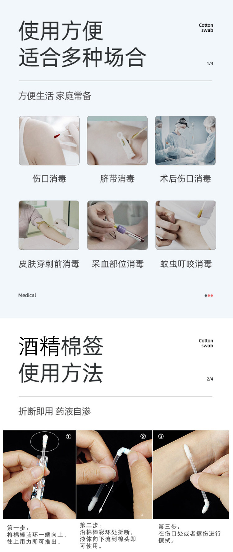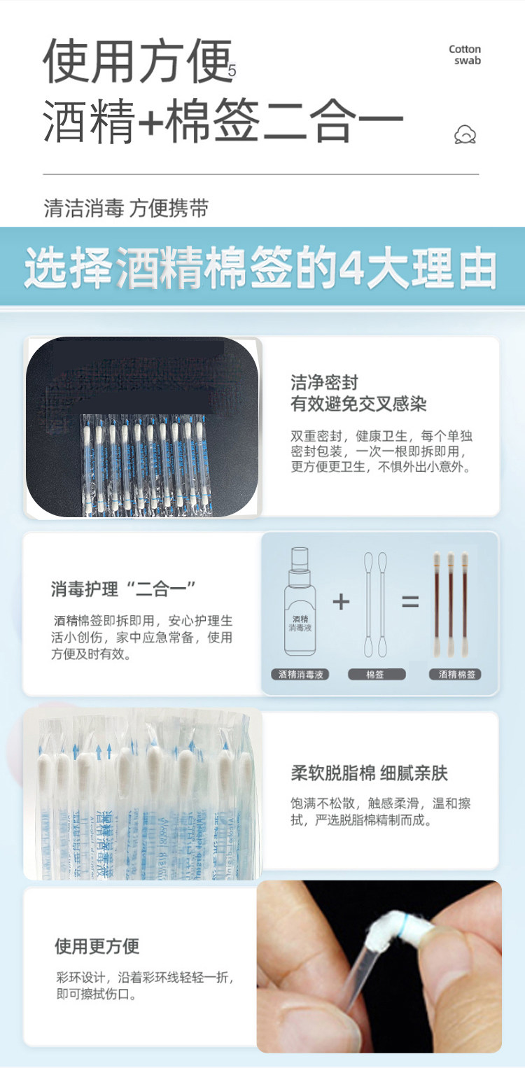 Одноразовые антибактериальные гигиенические ватные палочки для новорожденных