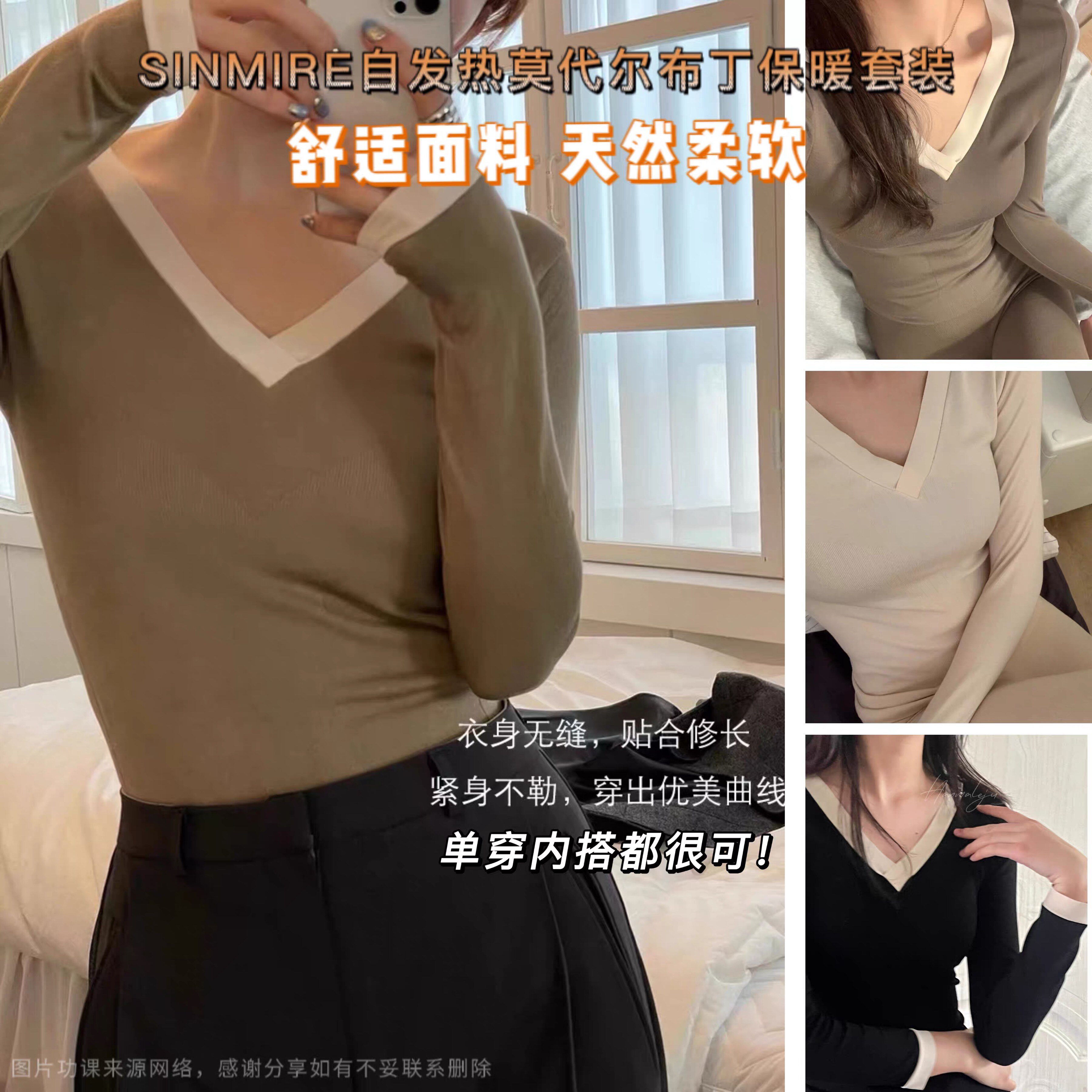 Качество текстуры!Sinmire спонтанно подогревается модальный теплый теплый, набор осенней одежды и осенние брюки, чтобы сыграть в нижнюю рубашку