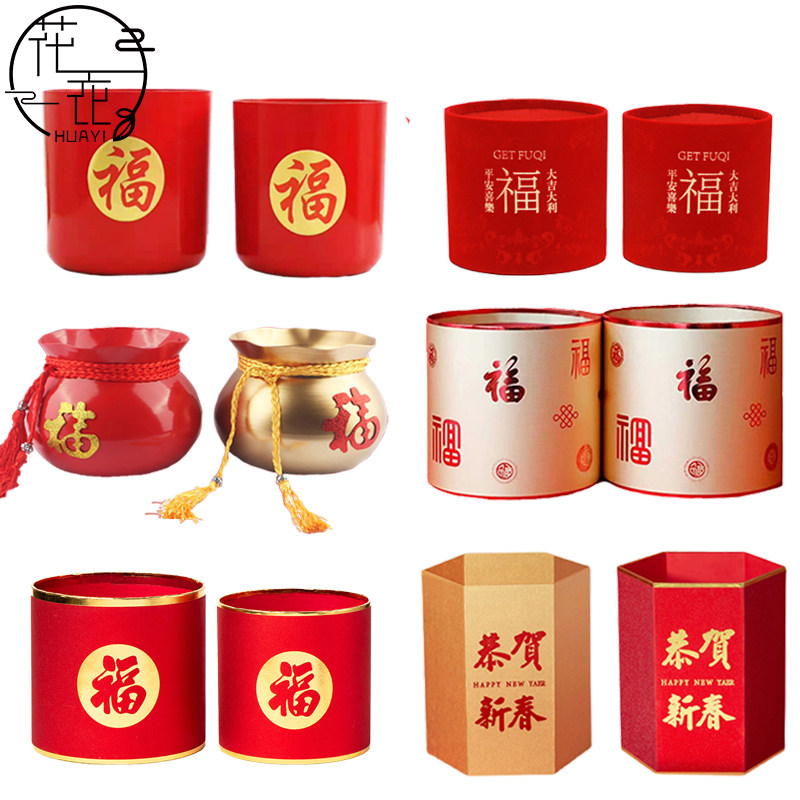 Новогоднее благословение ведро с ковшой, цветочная коробка высокая компоновка новогодней вставки цветочной вставки ствола 2023 Аксессуары DIY