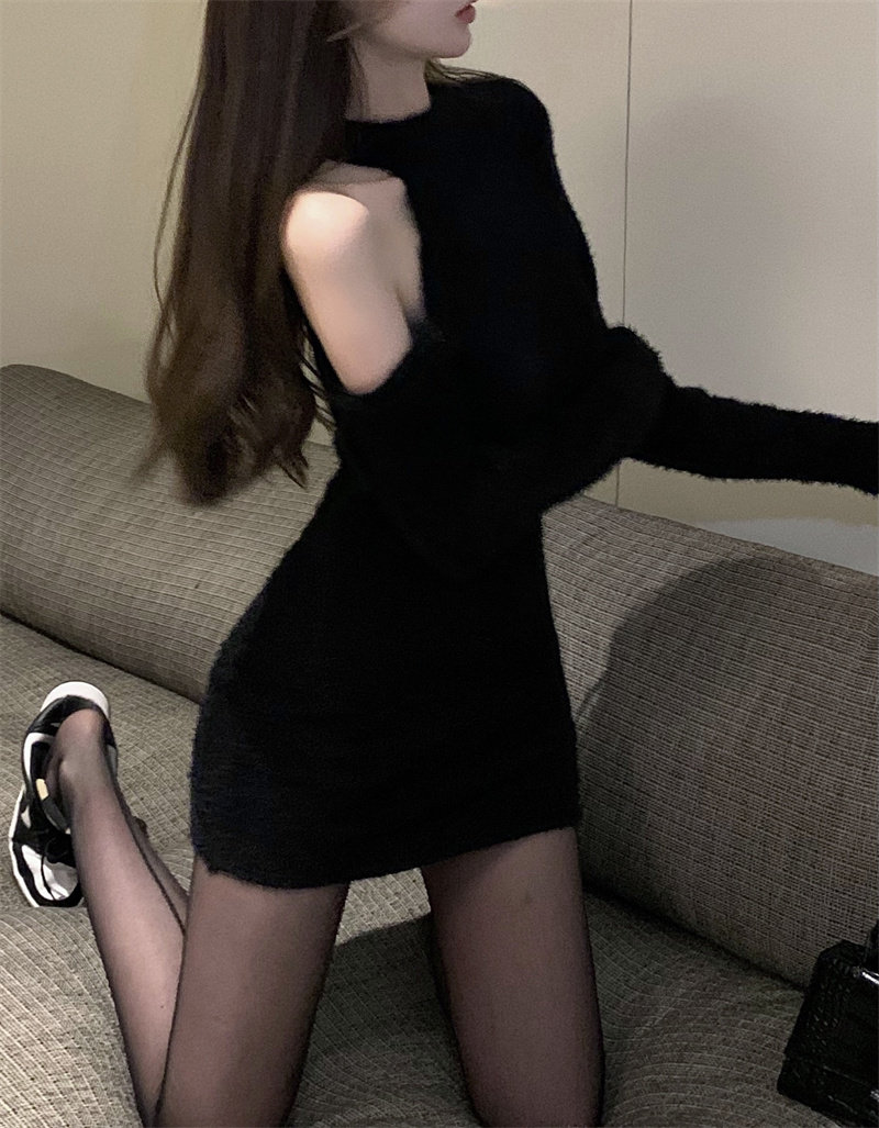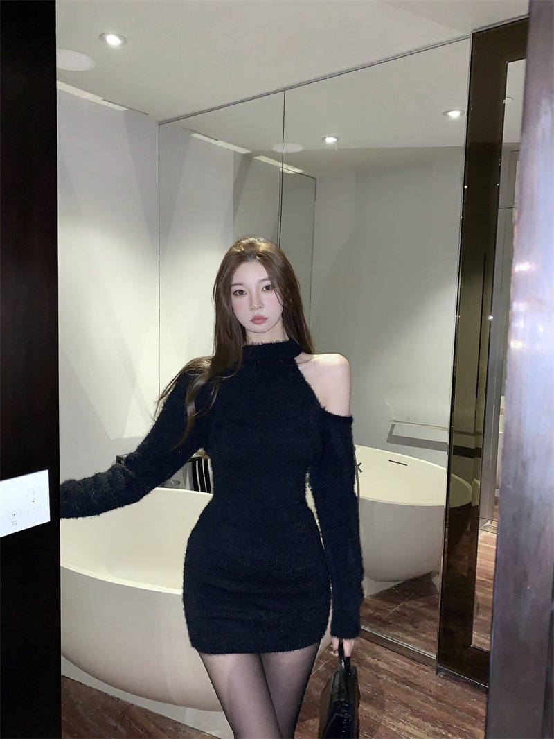 Трикотажное сексуальное трикотажное платье, базовое шерстяное платье, с акцентом на бедрах, изысканный стиль