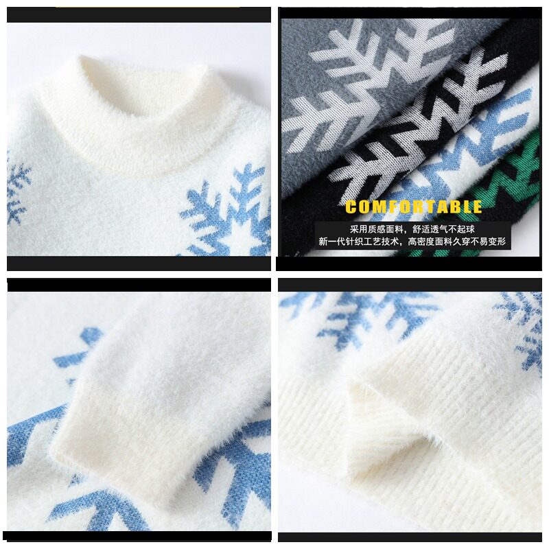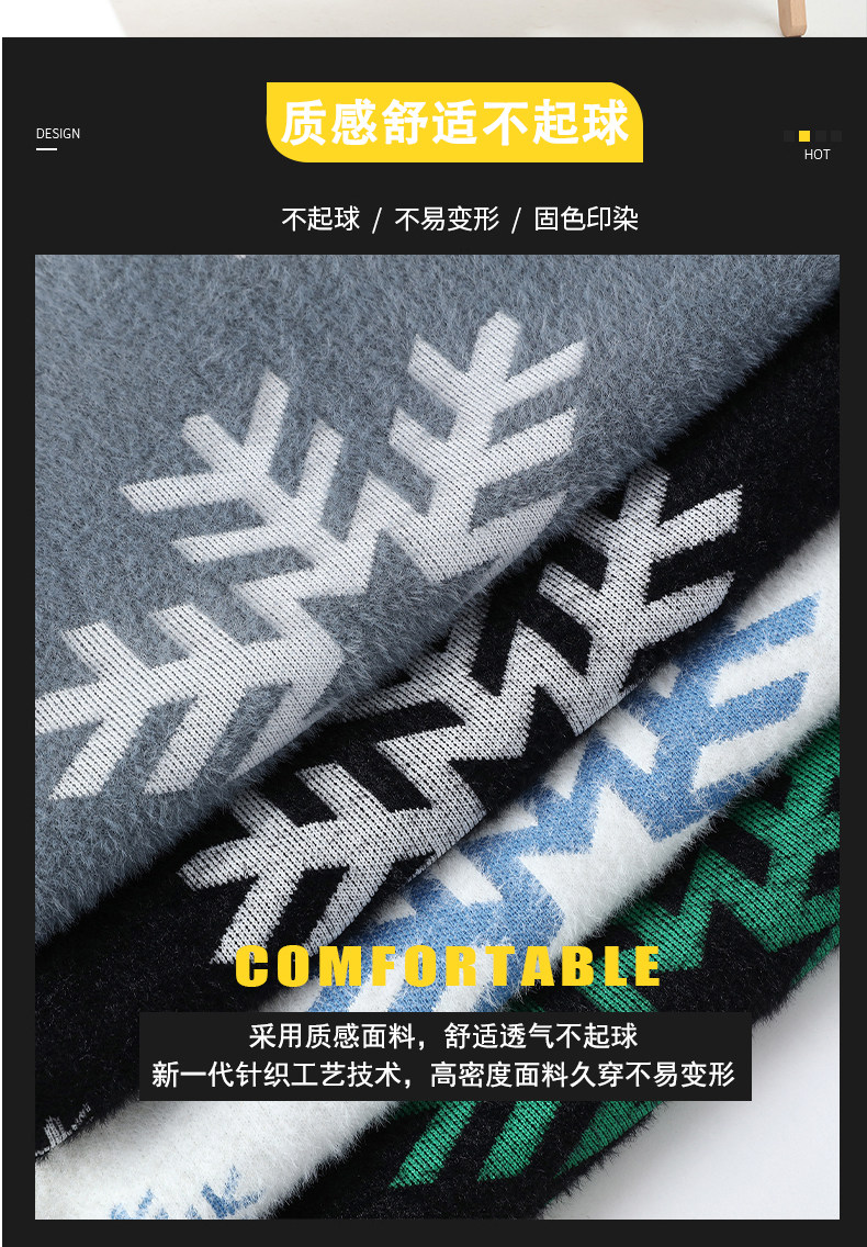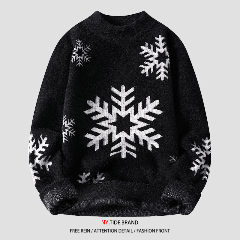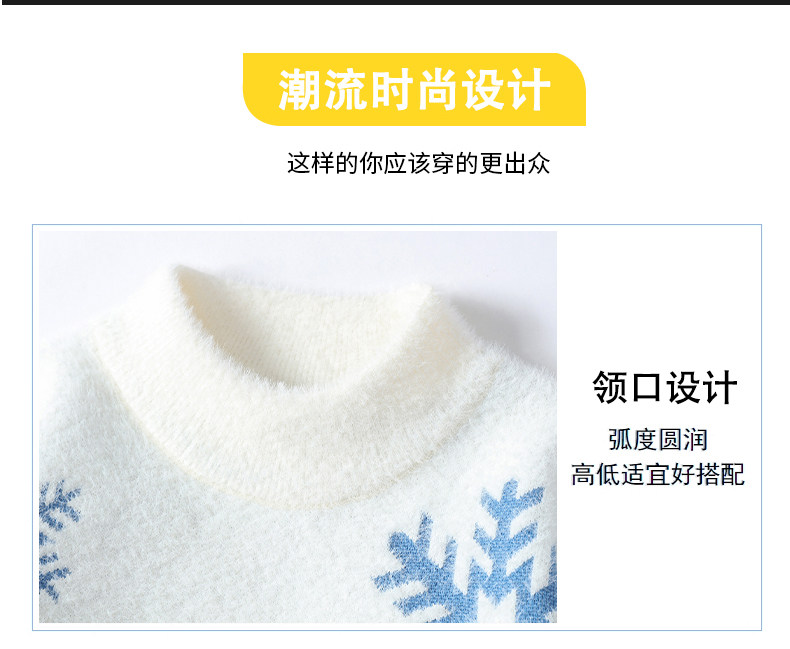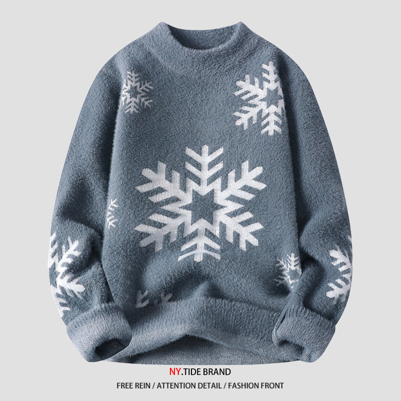 NY Элитный бархатный трикотажный демисезонный утепленный базовый приятный телу свитер для отдыха, со снежинками, оверсайз