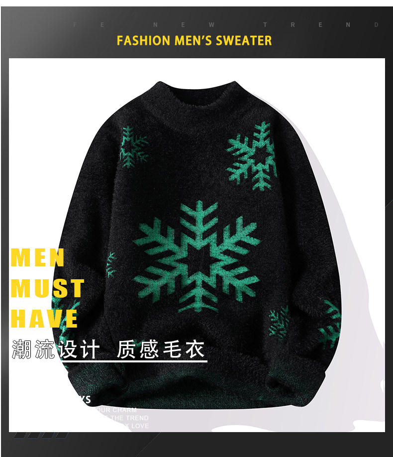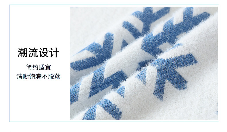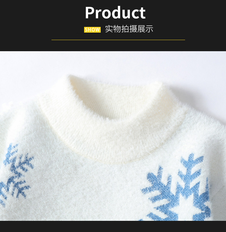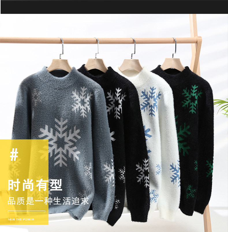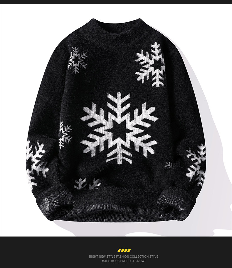 NY Элитный бархатный трикотажный демисезонный утепленный базовый приятный телу свитер для отдыха, со снежинками, оверсайз