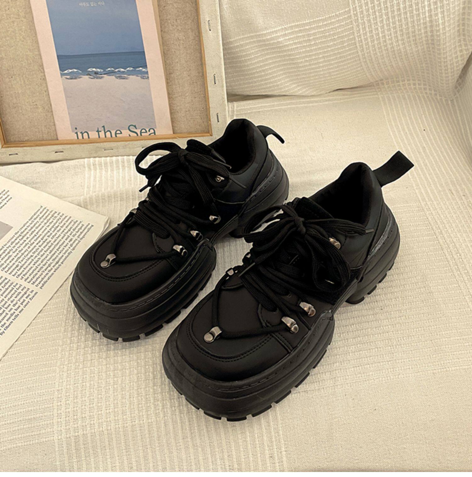 Высокая универсальная черная демисезонная спортивная обувь для отдыха на платформе, изысканный стиль, коллекция 2022