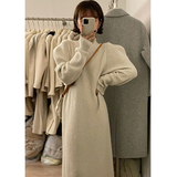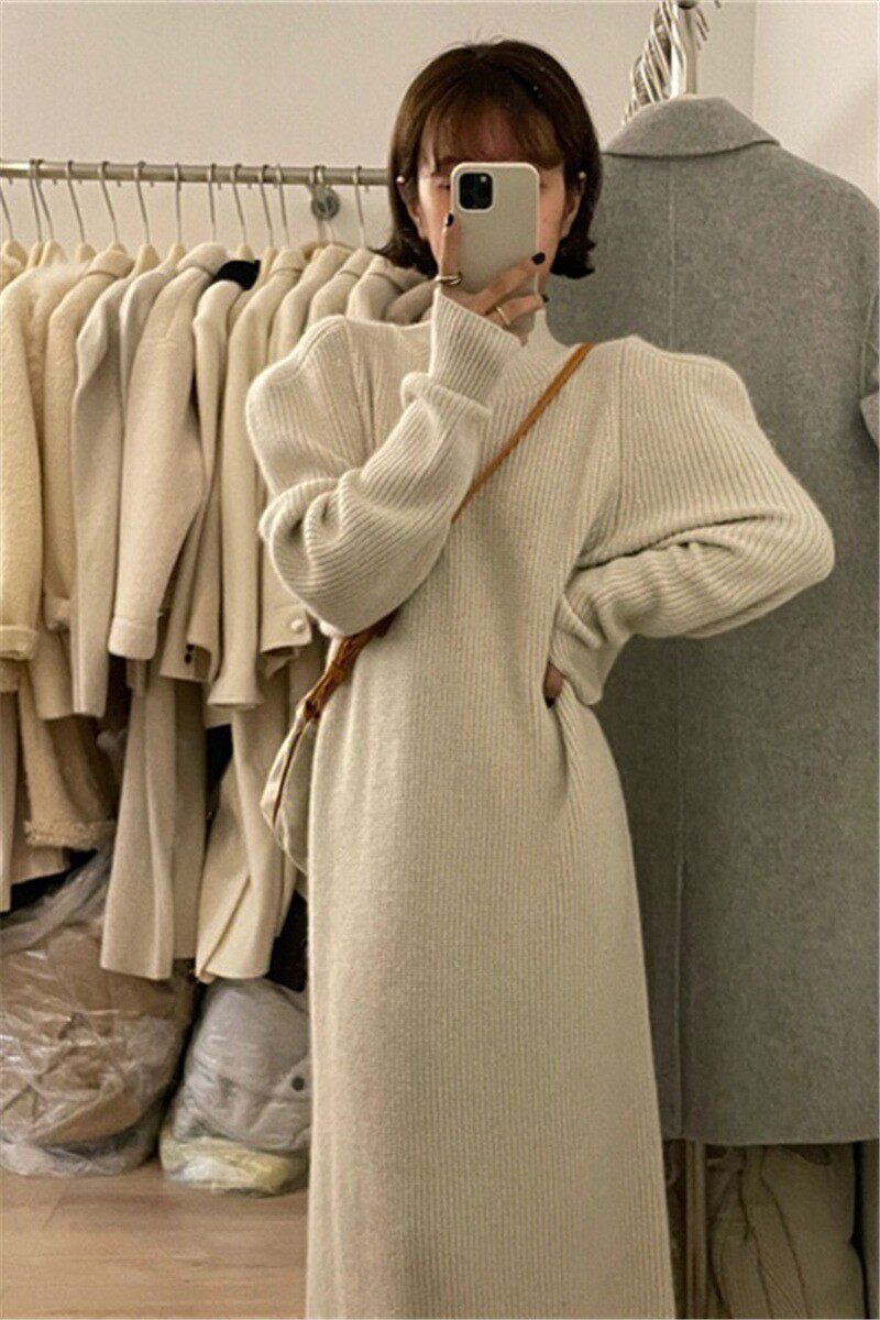 Абрикосовый свитер, бархатное трикотажное платье, базовая длинная юбка, рукава фонарики, длина макси