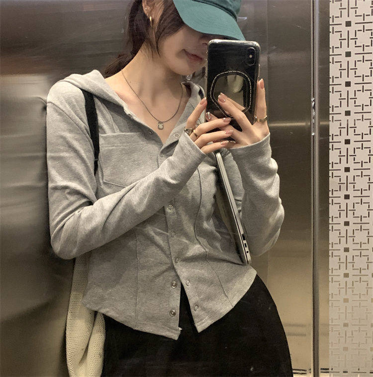 Дизайнерский лонгслив для отдыха, трикотажный свитер с капюшоном, базовая демисезонная футболка, тренд сезона, в западном стиле