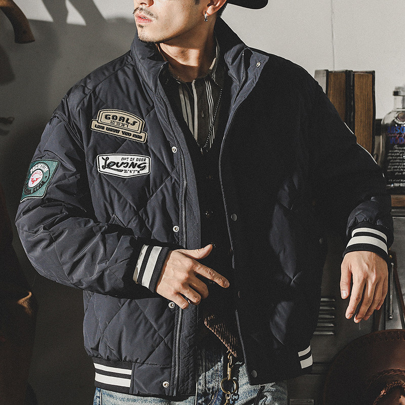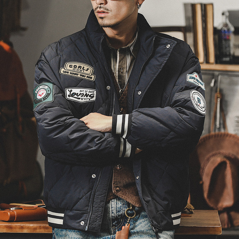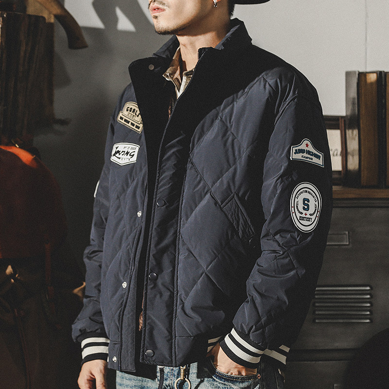 Бархатный демисезонный классический пуховик, ретро куртка, утиный пух, в американском стиле, увеличенная толщина