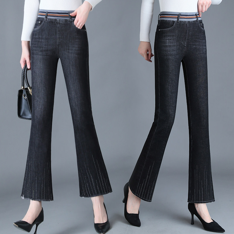 Осенние джинсы, штаны, приталенные штаны-клёш, эластичная талия, 2023 года