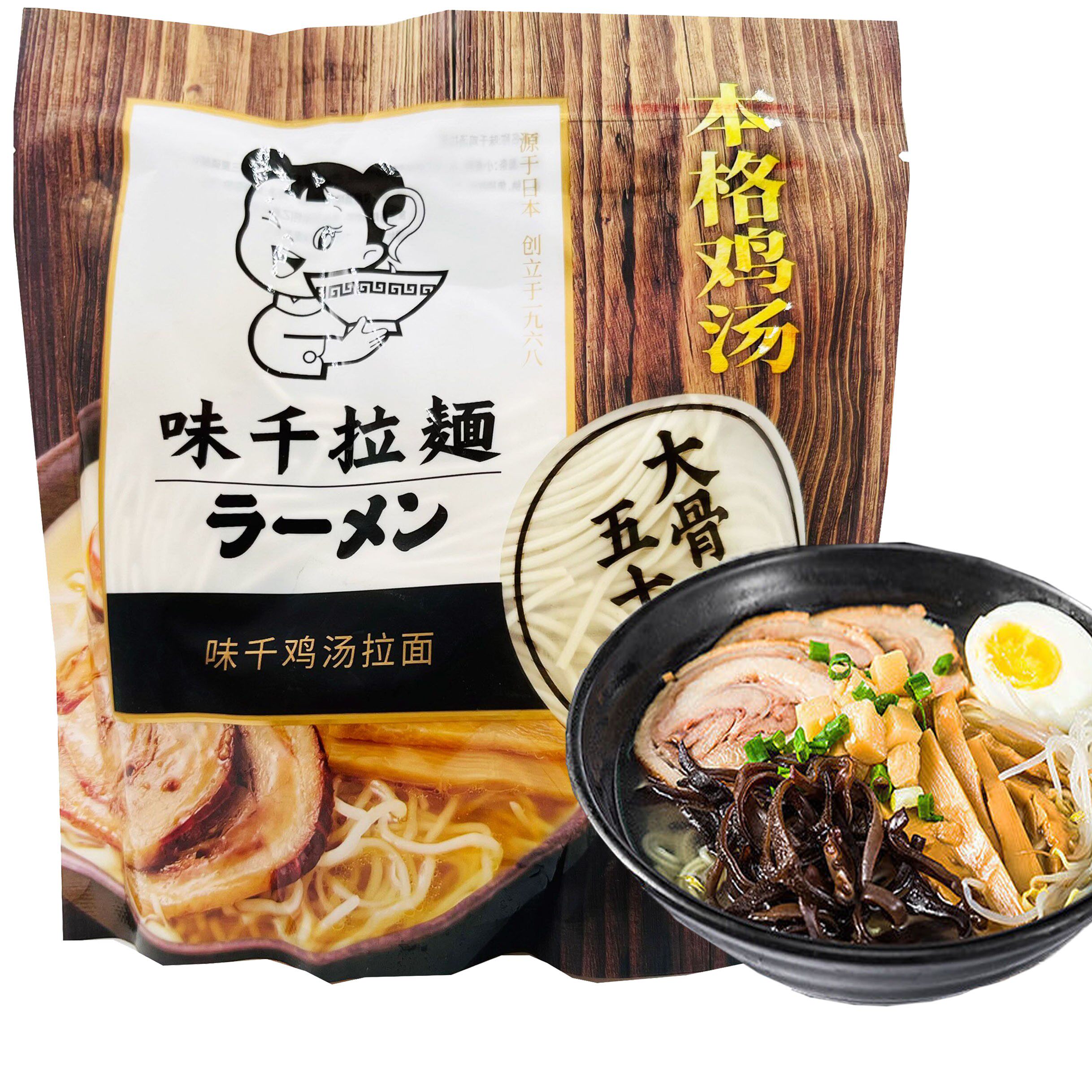 Lingqi Big -Name Куриный суп из свиного костяного супа рамэн 300 г кормления суп -лапша Приготовление лапши Полу -жареная свежая лапша