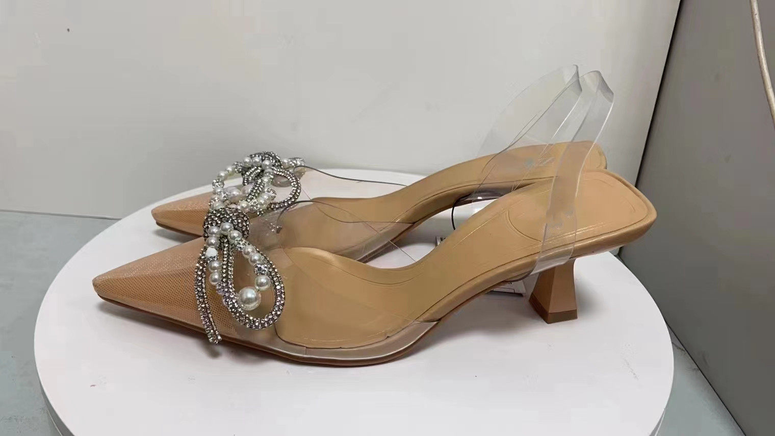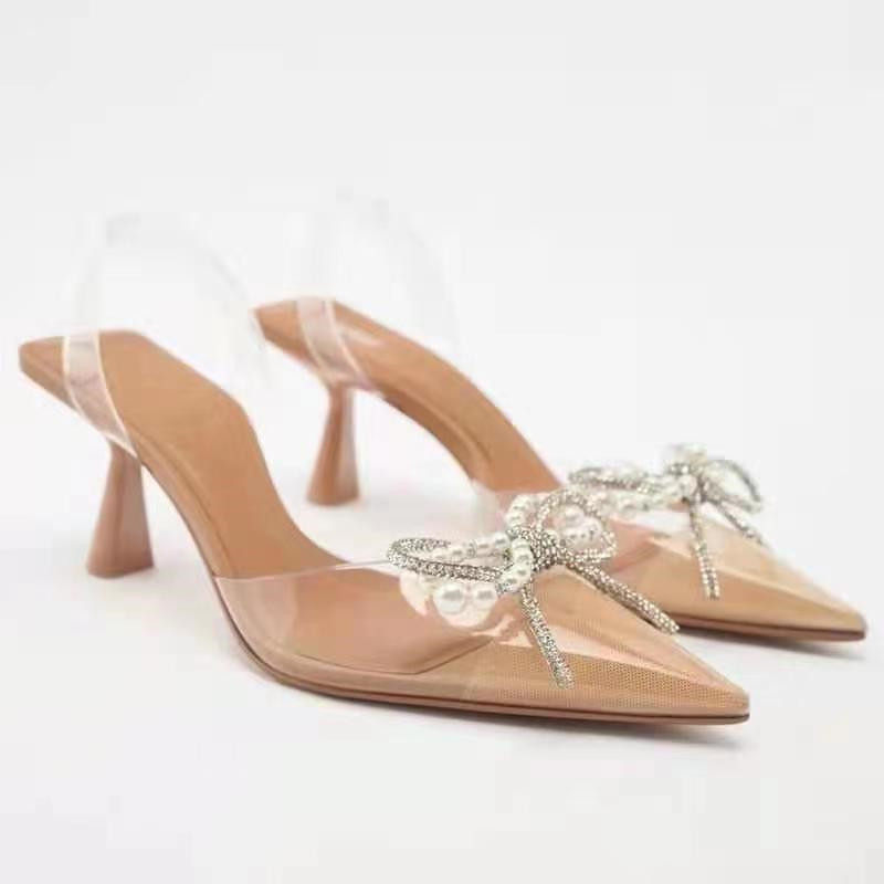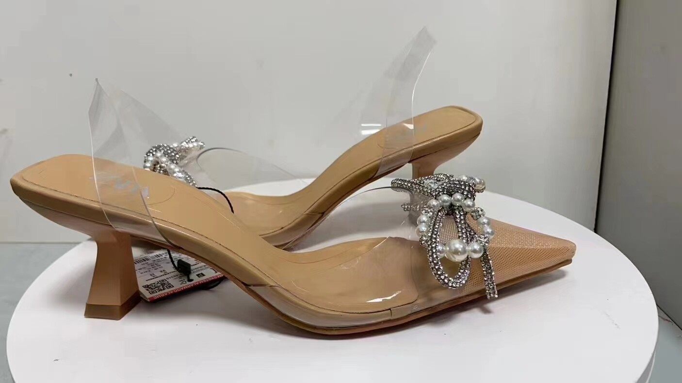 Летние бежевые босоножки, прозрачный браслет из бисера с бантиком