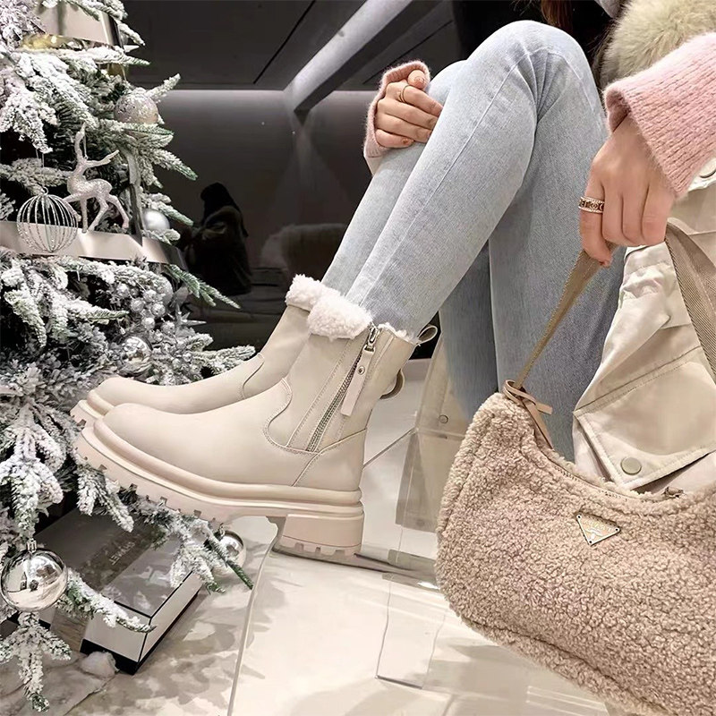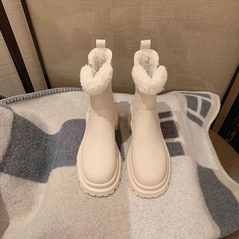 Martens, зимние утепленные белые короткие сапоги на платформе, средней длины