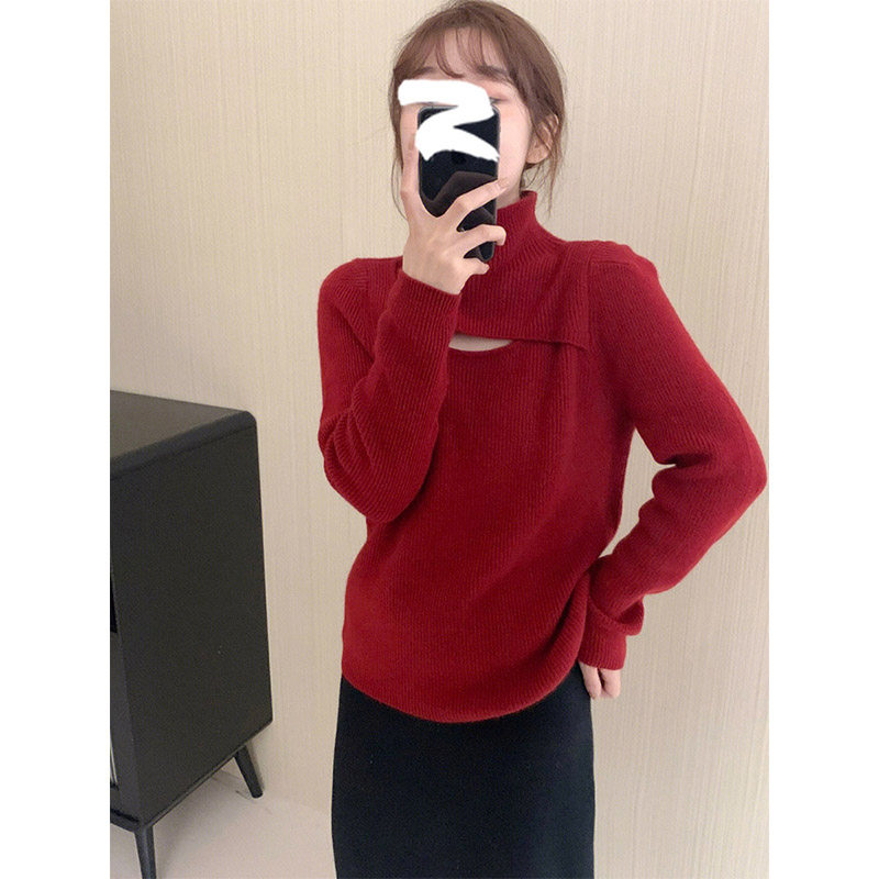 Осенний демисезонный базовый свитер, приятный телу красный трикотажный комплект, французский стиль