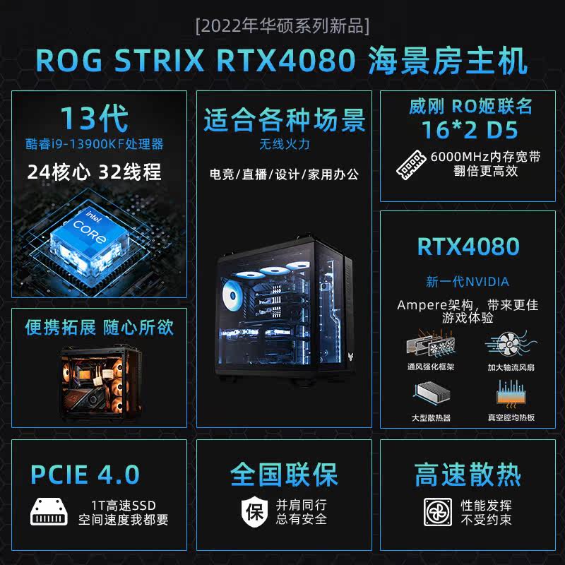 ASUS Motherboard Diy Сборка сборочной машины 13-е поколение I7-13700KF/I9-13900KF/RTX4080 Белая графическая барная библиотека серия библиотеки серии e-sports Game Live Compunt