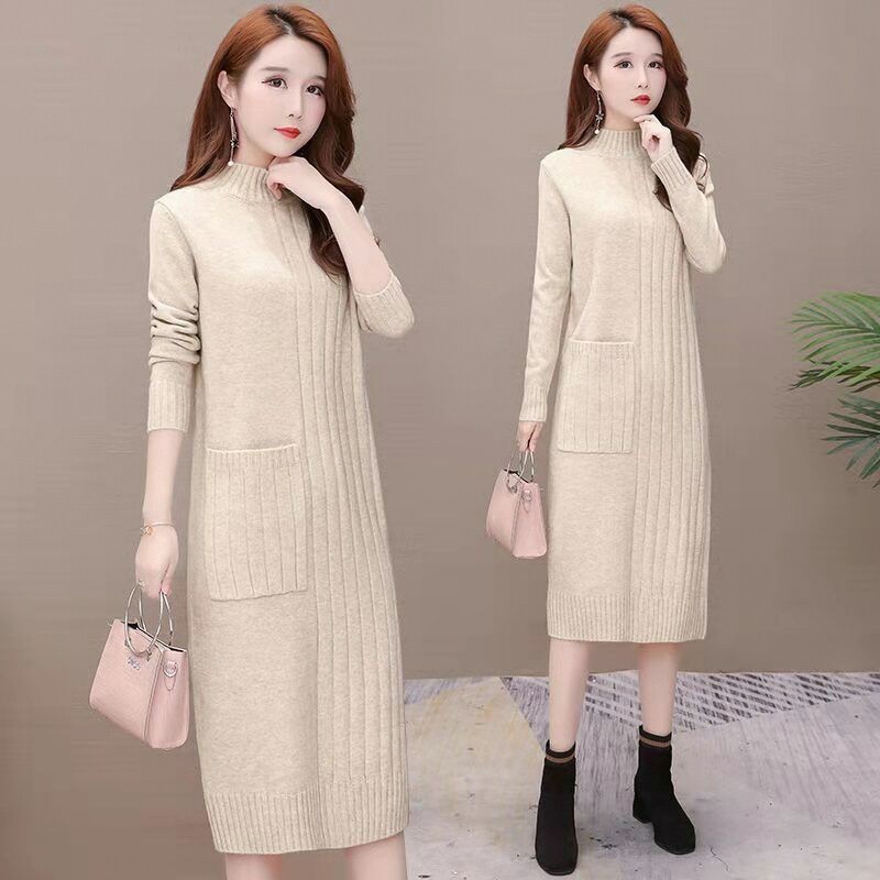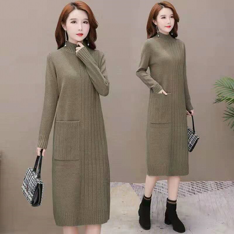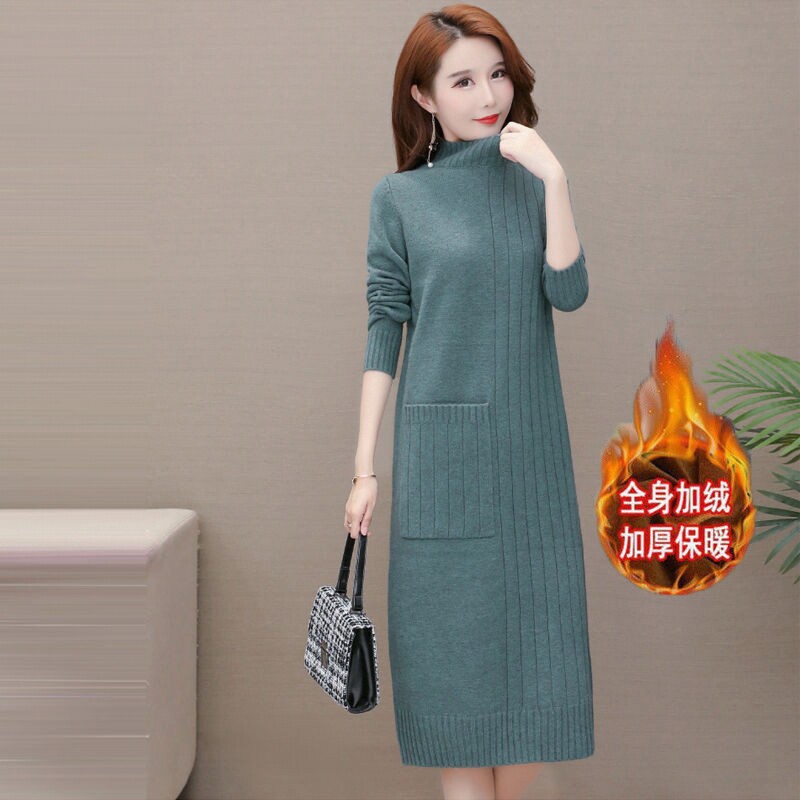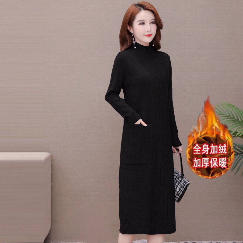 Утепленное демисезонное длинное трикотажное платье, базовое шерстяное платье, средней длины