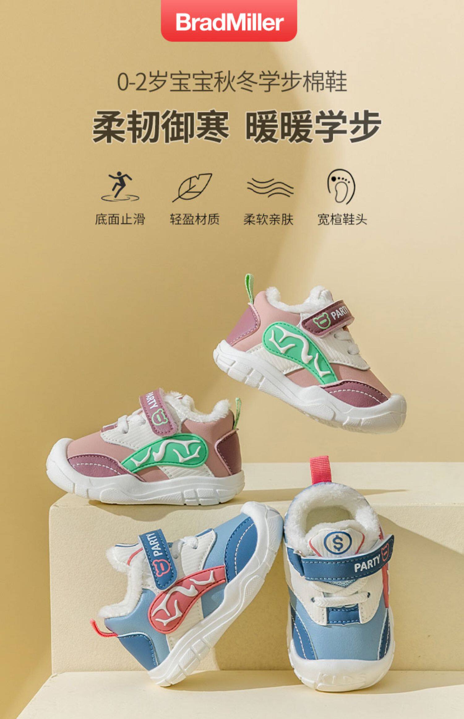 Детская демисезонная утепленная нескользящая обувь для раннего возраста, мягкая подошва