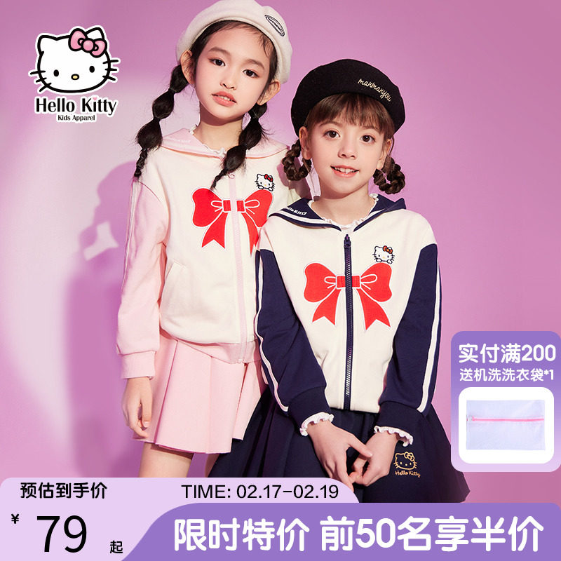 Hello Kitty, весенняя военно-морская куртка с бантиком с молнией, детская одежда, 2023, тренд сезона, подходит для подростков