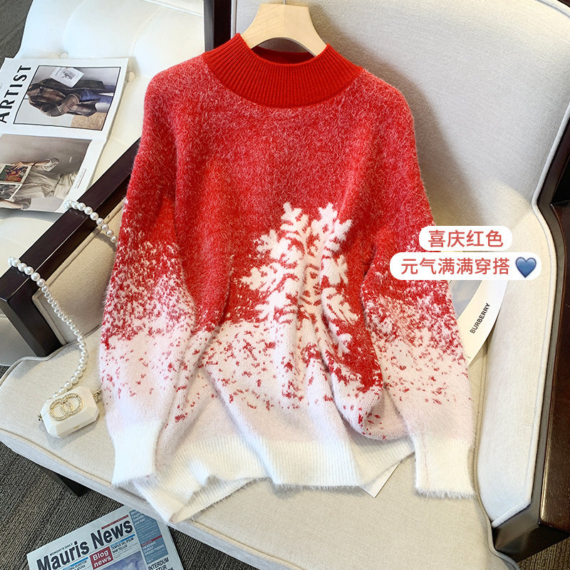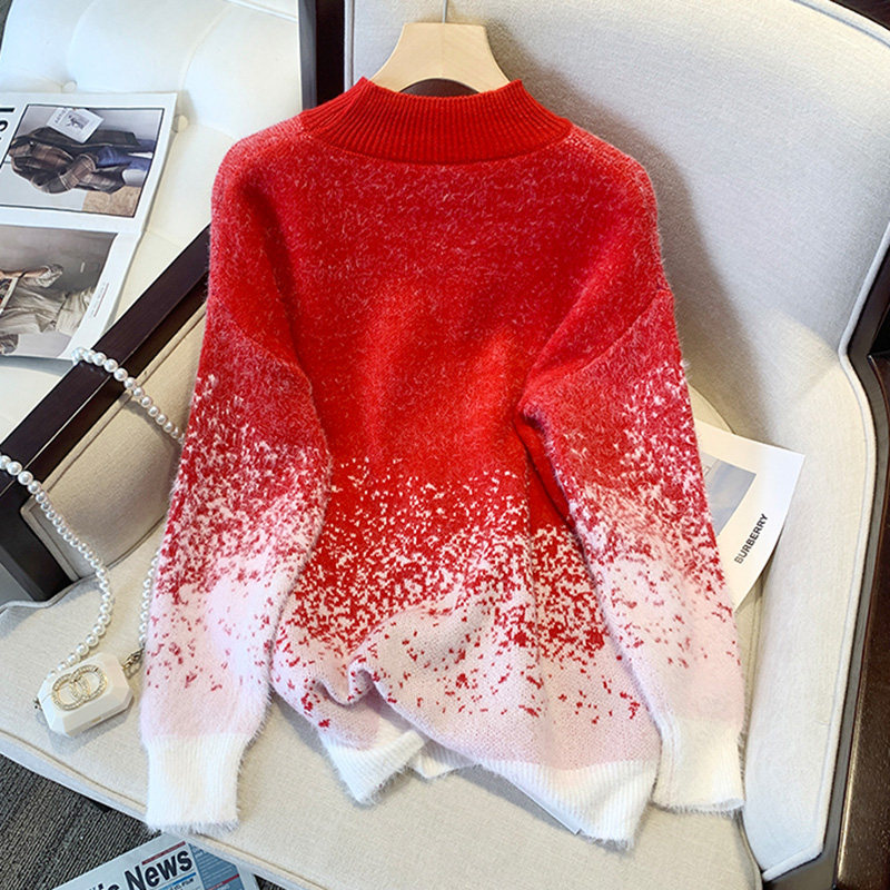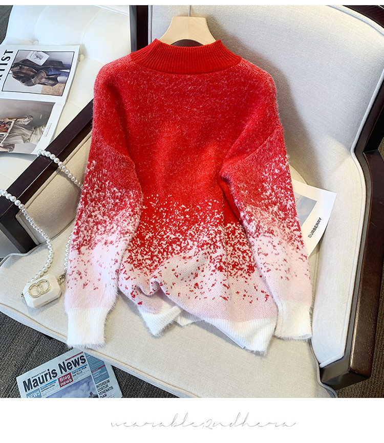 (Трансграничная торговля), красный цветной трикотажный свитер, высокий воротник