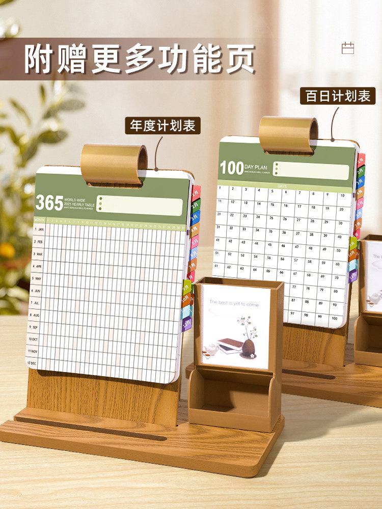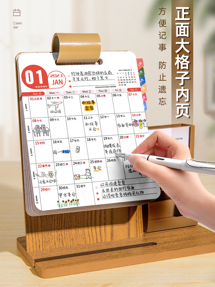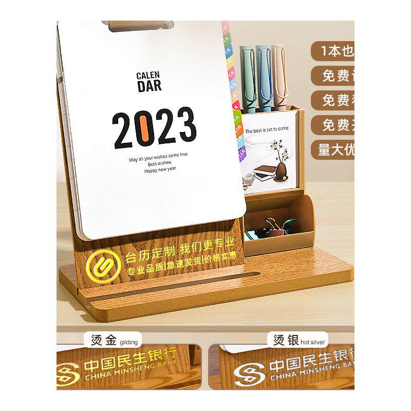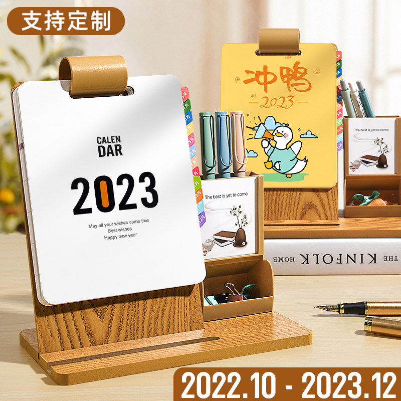 Деревянный настольный календарь, держатель для ручек, коллекция 2023, год кролика, с печатью вашего логотипа, делается под заказ
