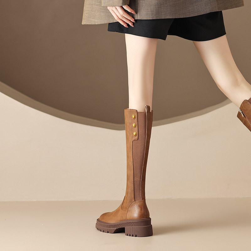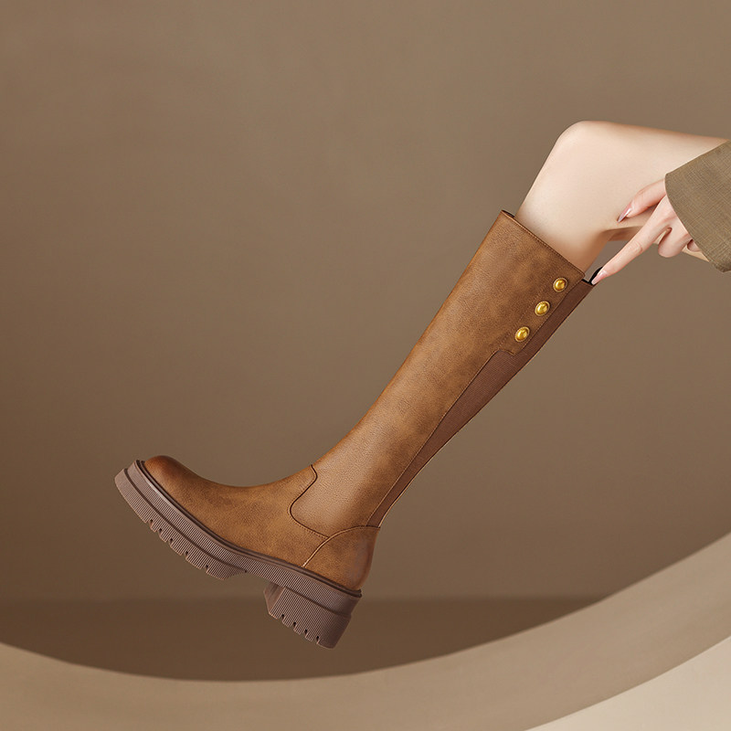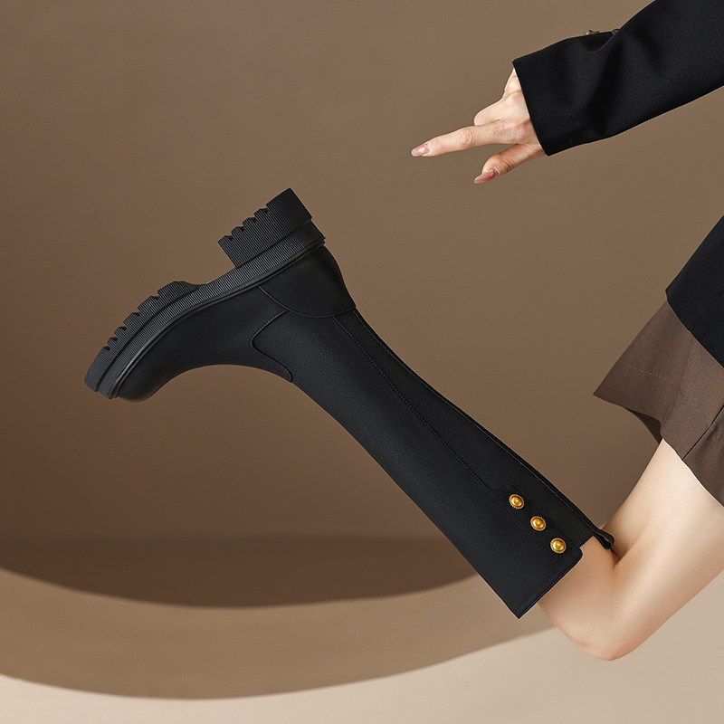Tisdaini Длинные ноги ~ коричневая толстая подошва длинная труба обувь женская осень и зима черная кожаная кожаная сапоги с высокой трубкой 6 см 6 см.
