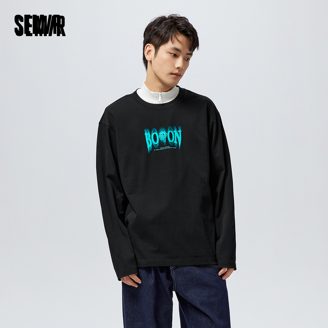 Semir, мужской осенний черный лонгслив, оверсайз