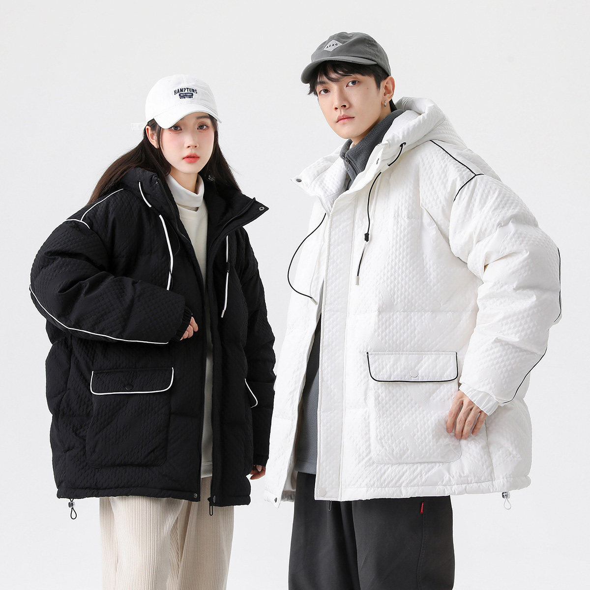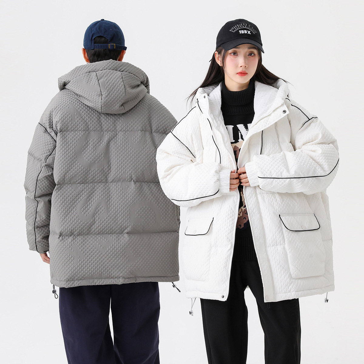 Демисезонный трендовый комфортный пуховик для влюбленных с капюшоном, куртка, оверсайз