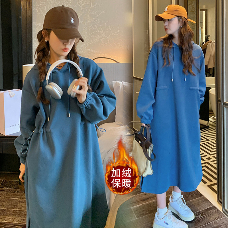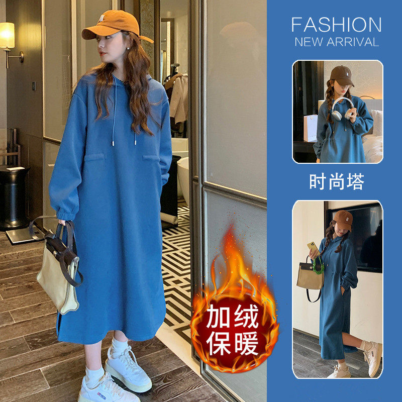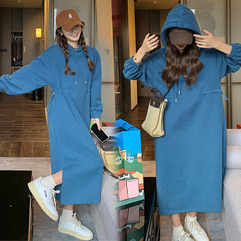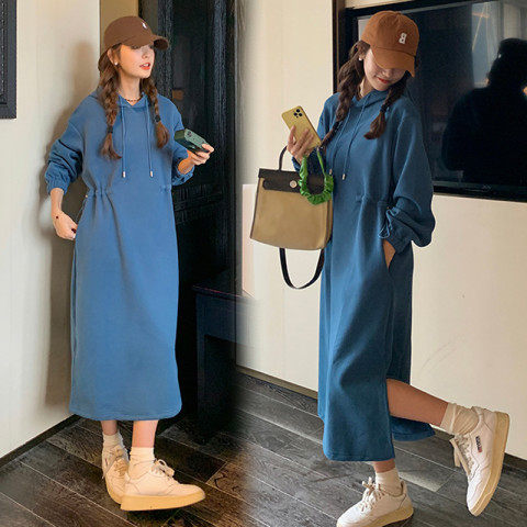 Демисезонный длинный лонгслив, утепленная толстовка с капюшоном, платье, средней длины, в корейском стиле, по фигуре