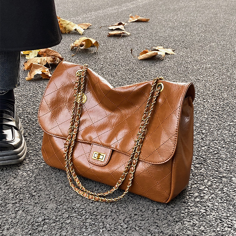 Цепь с ромбовидным узором, вместительная и большая сумка на одно плечо, сумка через плечо, изысканный стиль
