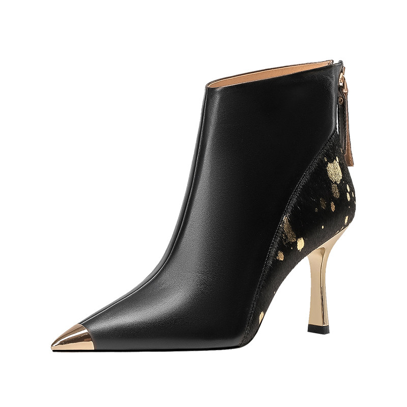 Модные кожаные комфортные демисезонные короткие сапоги