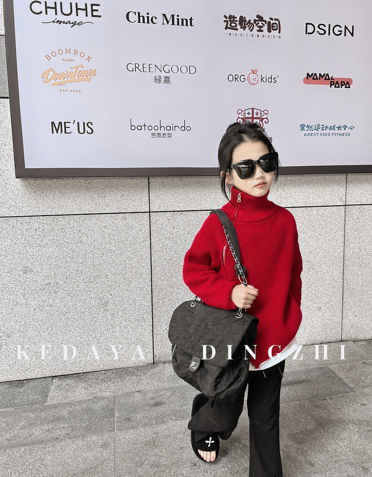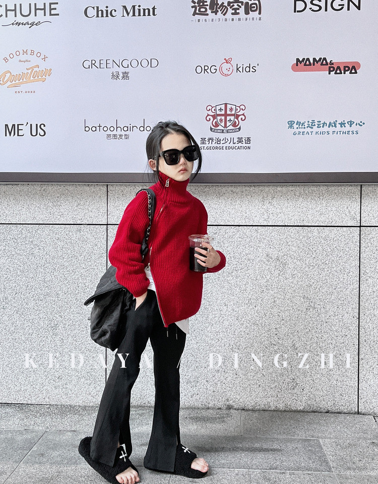 Весенний красный цветной свитер, делается под заказ, детская одежда, в корейском стиле, семейный стиль