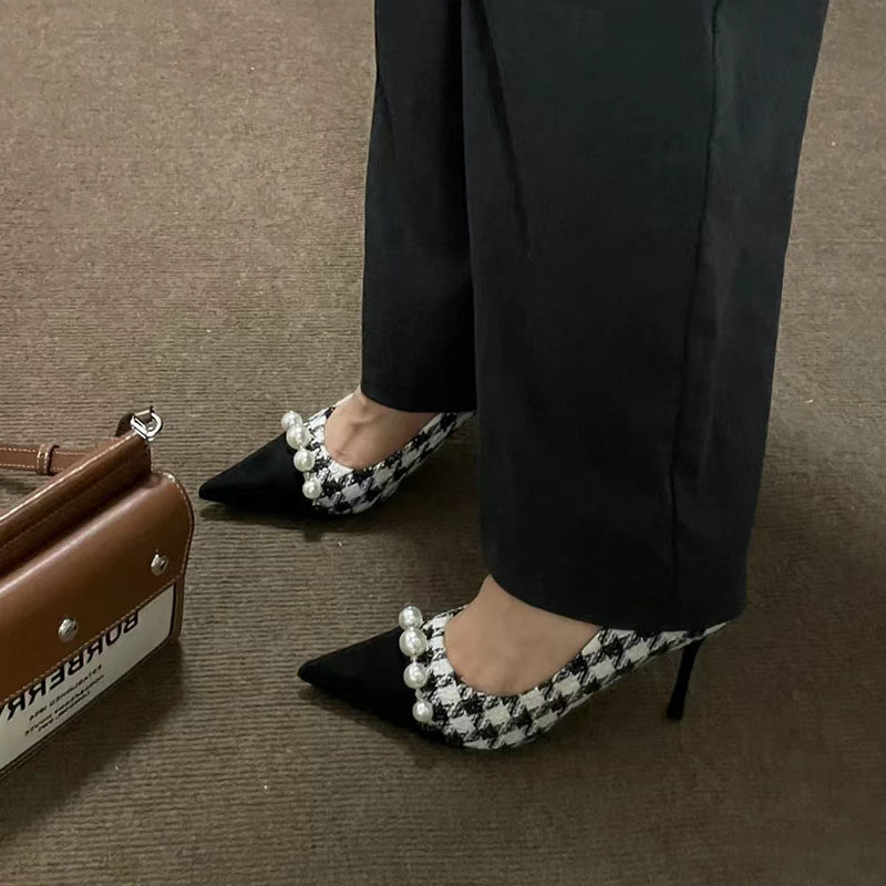 Весенняя обувь на высоком каблуке с заостренным носом, в стиле Шанель, французский стиль