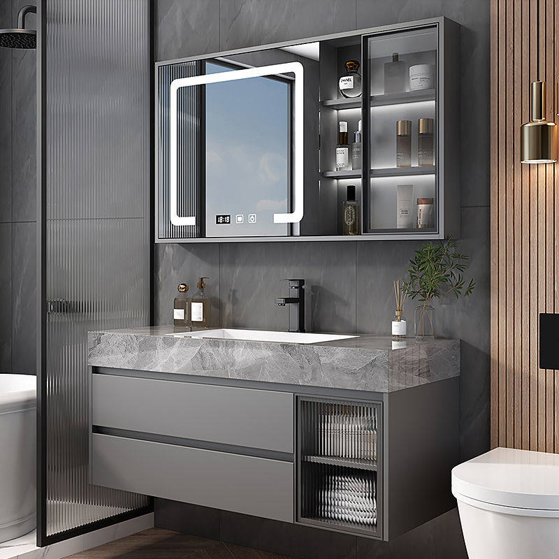 Комбинация шкафа для ванной комнаты современного минималистского каменного панели столешниц бесшовного керамического встроенного горшка.