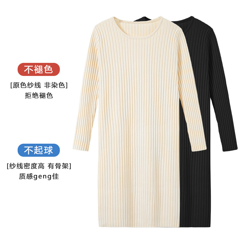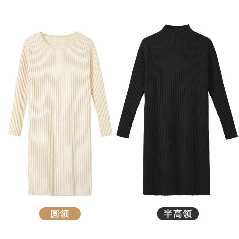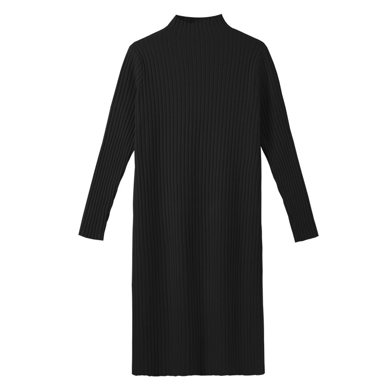 Демисезонное трикотажное платье, длинное базовое шерстяное платье, высокий воротник, средней длины, подходит для подростков