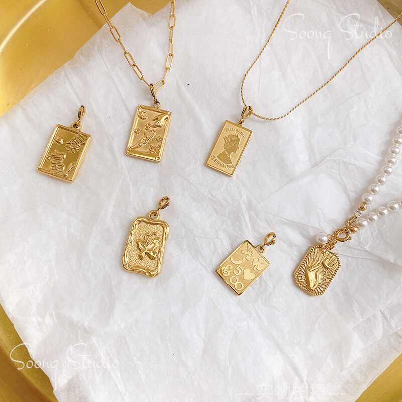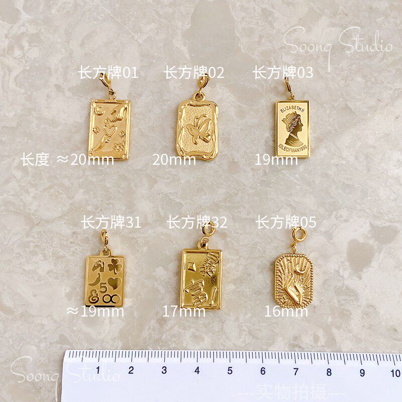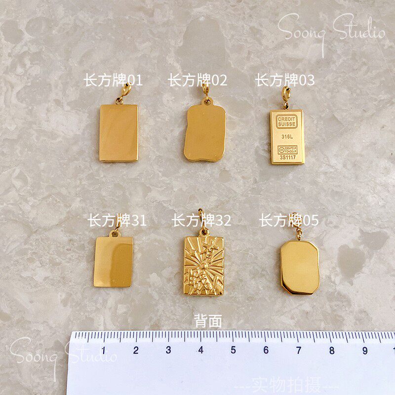 Прямоугольная трехмерная подвеска, 18 карат, золотой цвет