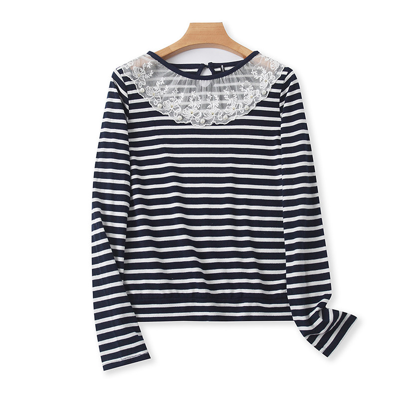Кружевная футболка с круглым воротником, осенний базовый приятный телу лонгслив, свободный крой