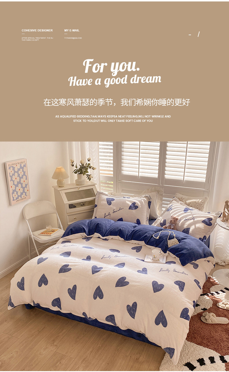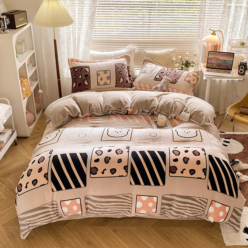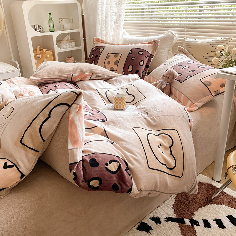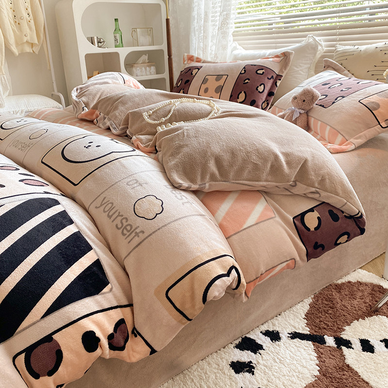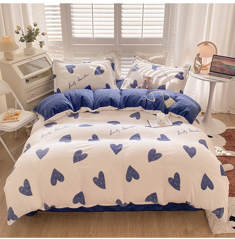 Демисезонные бархатные джинсы с начесом, двусторонний комплект, коралловый бархатный пододеяльник, бархатное покрывало, простыня, 4 предмета
