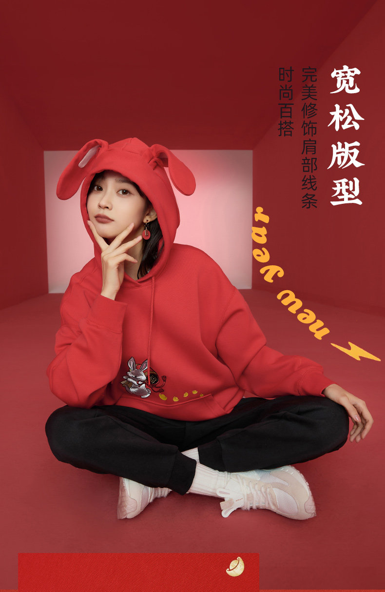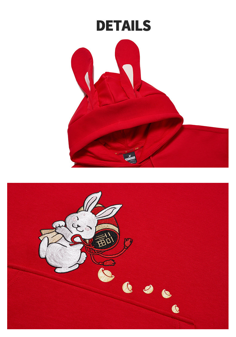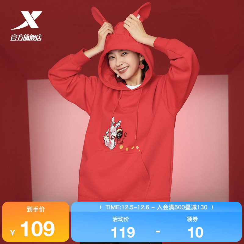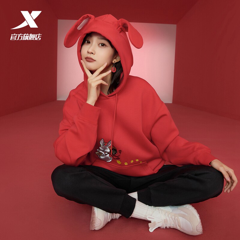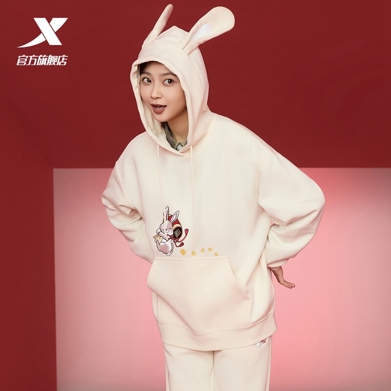 Xtep, мультяшная толстовка с капюшоном, трендовое термобелье, с вышивкой