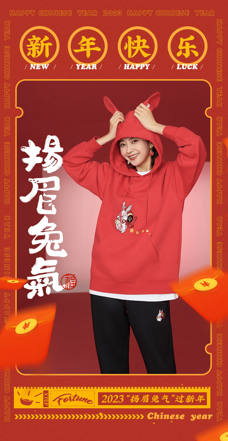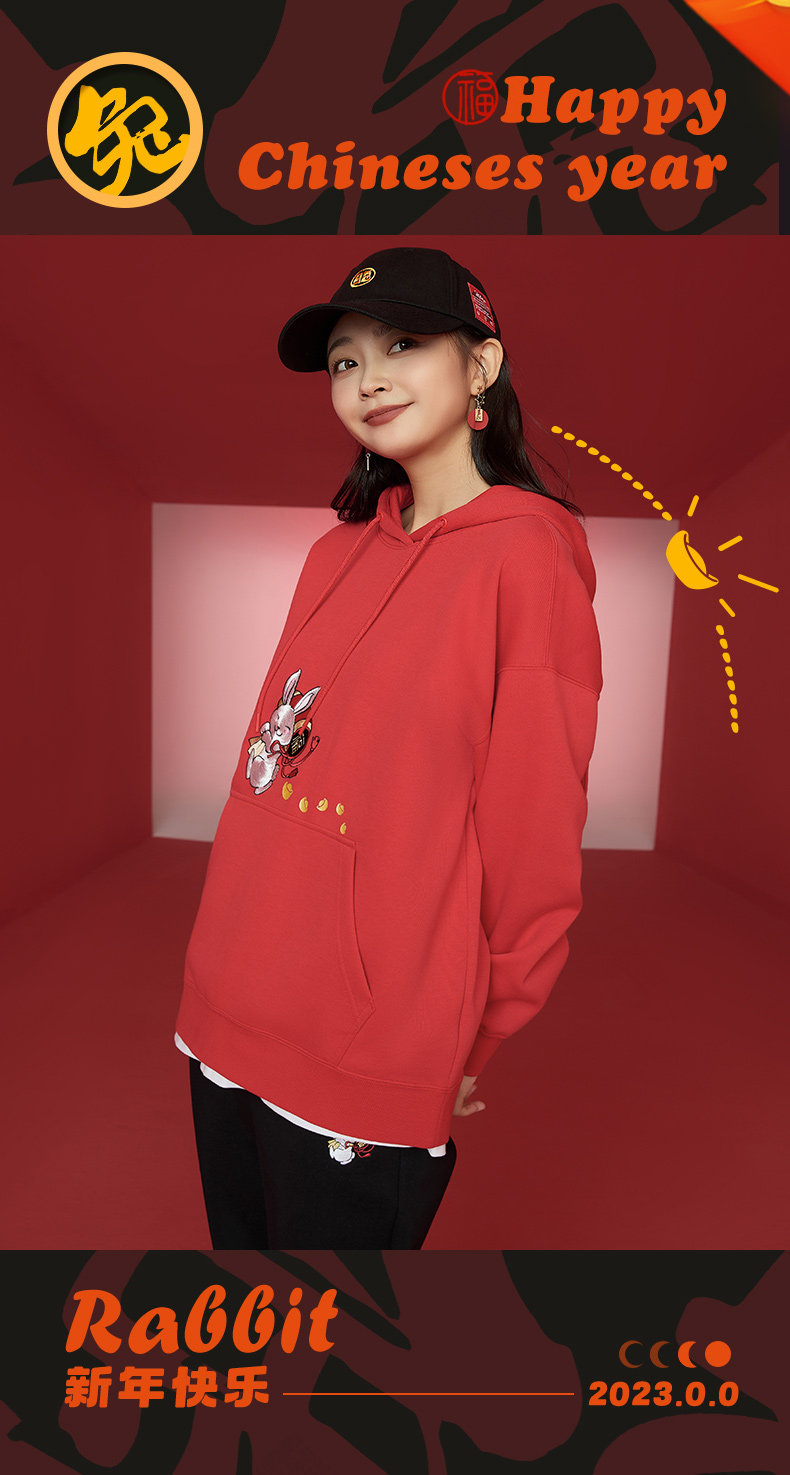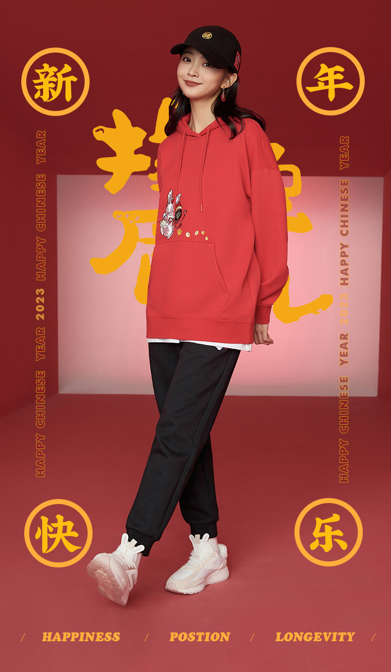 Xtep, мультяшная толстовка с капюшоном, трендовое термобелье, с вышивкой